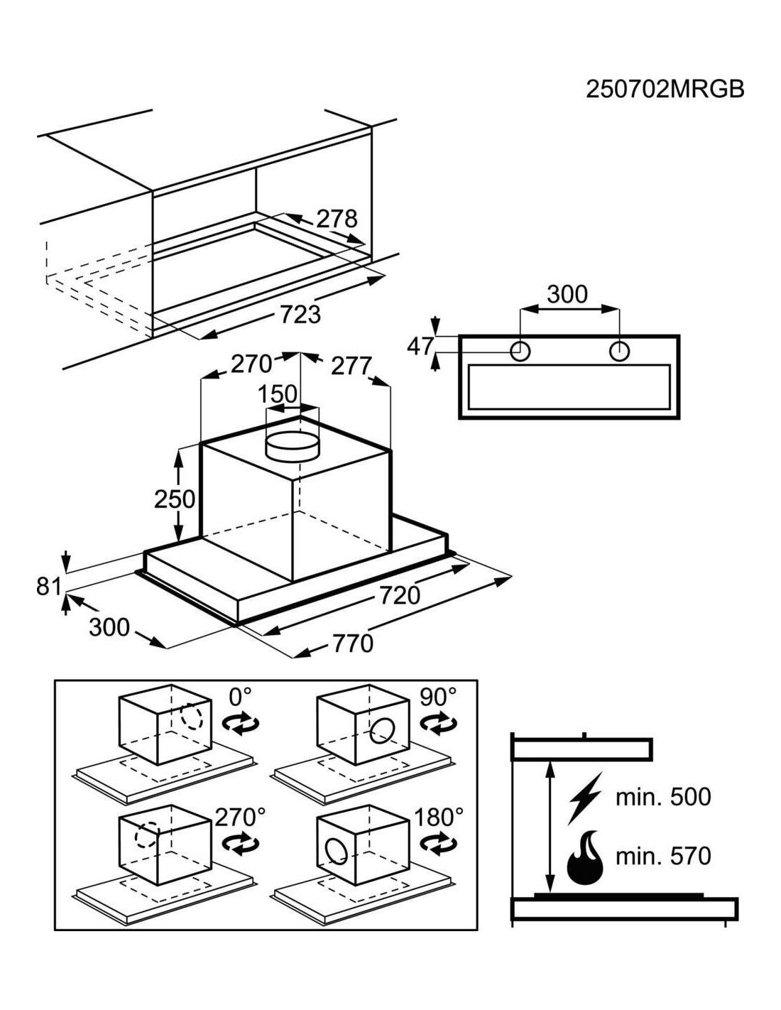 | Distanza minima dal piano cottura elettrico | 50 cm |