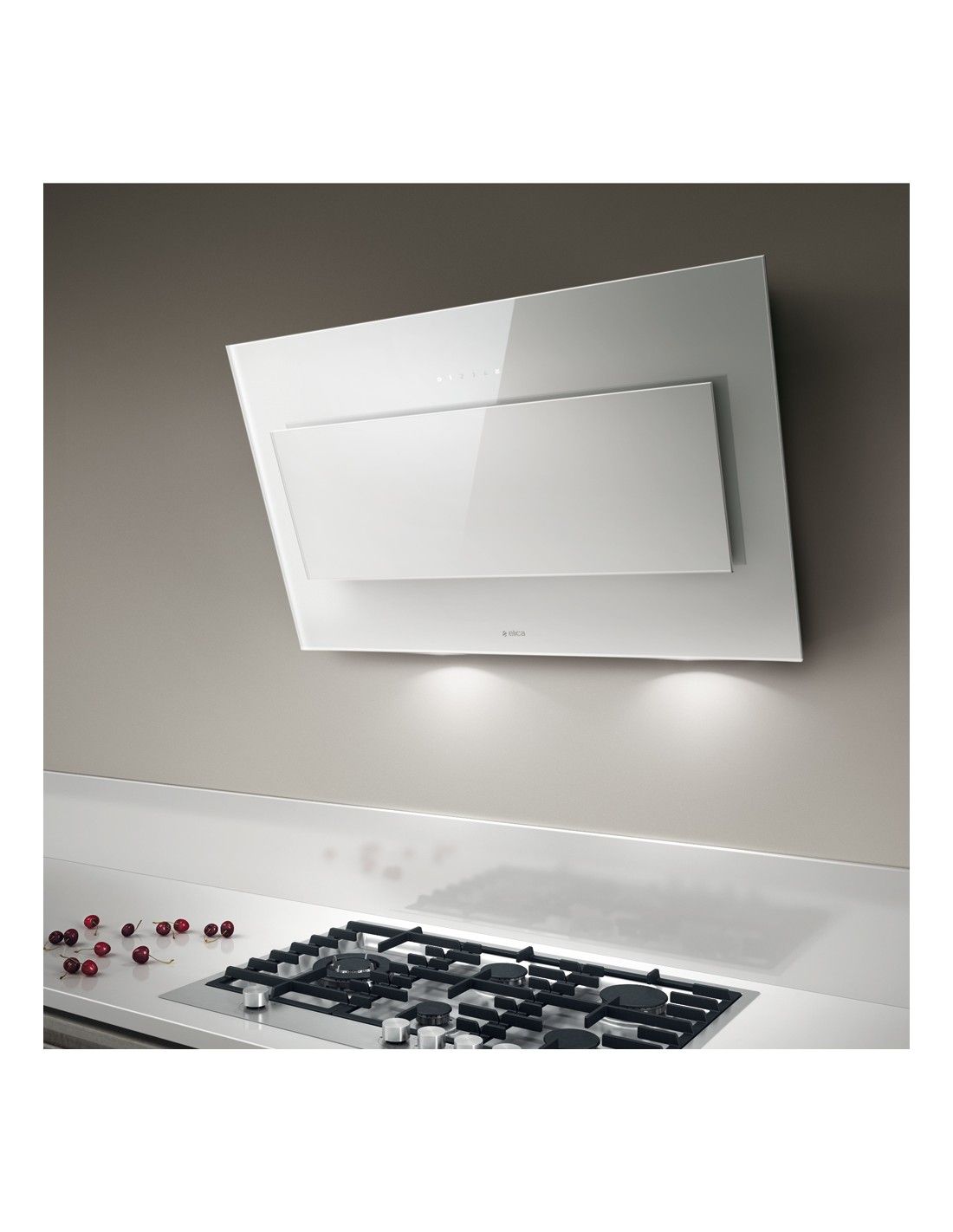 Elica VERTIGO WH/F/90. Potenza massima di estrazione: 500 m³/h, Tipo di estrazione: Filtrante, Rumorosità (velocità bassa): 43 dB. Tipo: Cappa aspirante a parete, Colore del prodotto: Bianco, Materiale della scocca: Vetro. Carico di collegamento: 290 W, Potenza motore: 250 W. Larghezza: 898 mm, Profondità: 330 mm, Altezza: 516,5 mm