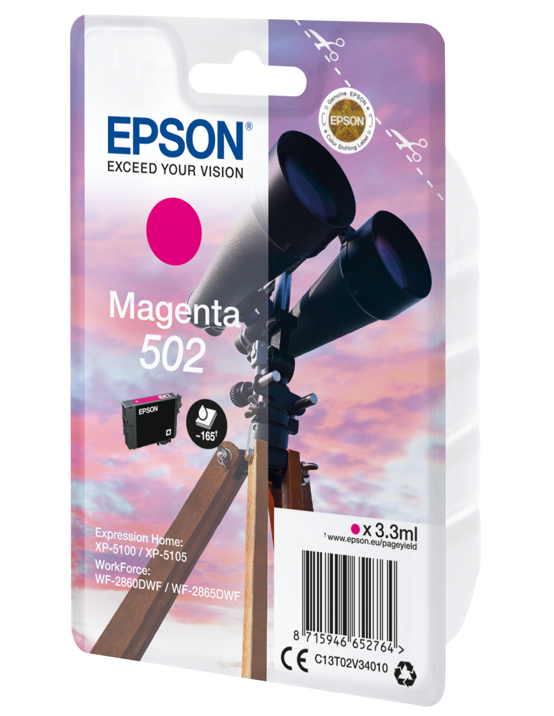 Ottieni stampe affidabili, nitide e brillanti a costi davvero ridotti utilizzando le cartucce di inchiostro a quattro colori della serie 502 di Epson. Caratterizzato da inchiostri dye a colori e inchiostro nero a pigmenti, questo sistema di cartucce consente di stampare documenti a colori ben definiti.