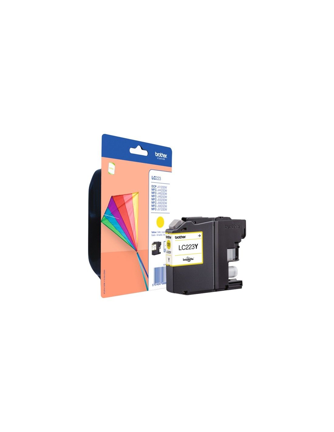 Brother LC-223Y. Tipo: Originale, Tipo di inchiostro: Inchiostro a base di pigmento, Colori di stampa: Giallo. Tipo di imballo: Blister. Produzione pagine note a piè di pagina: ISO / IEC 24711, Dimensioni carta: A4