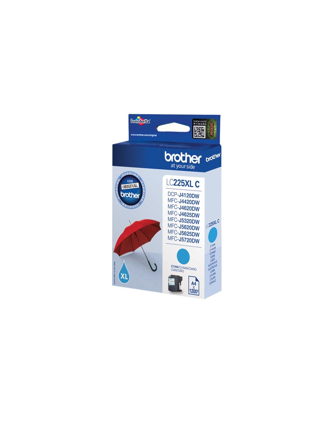 Brother LC-225XLC. Tipo: Originale, Colori di stampa: Ciano, Compatibilità: Brother MFC-J4420DW, MFC-J4625DW. Tipo di imballo: Blister. Produzione pagine note a piè di pagina: ISO / IEC 24711, Dimensioni carta: A4