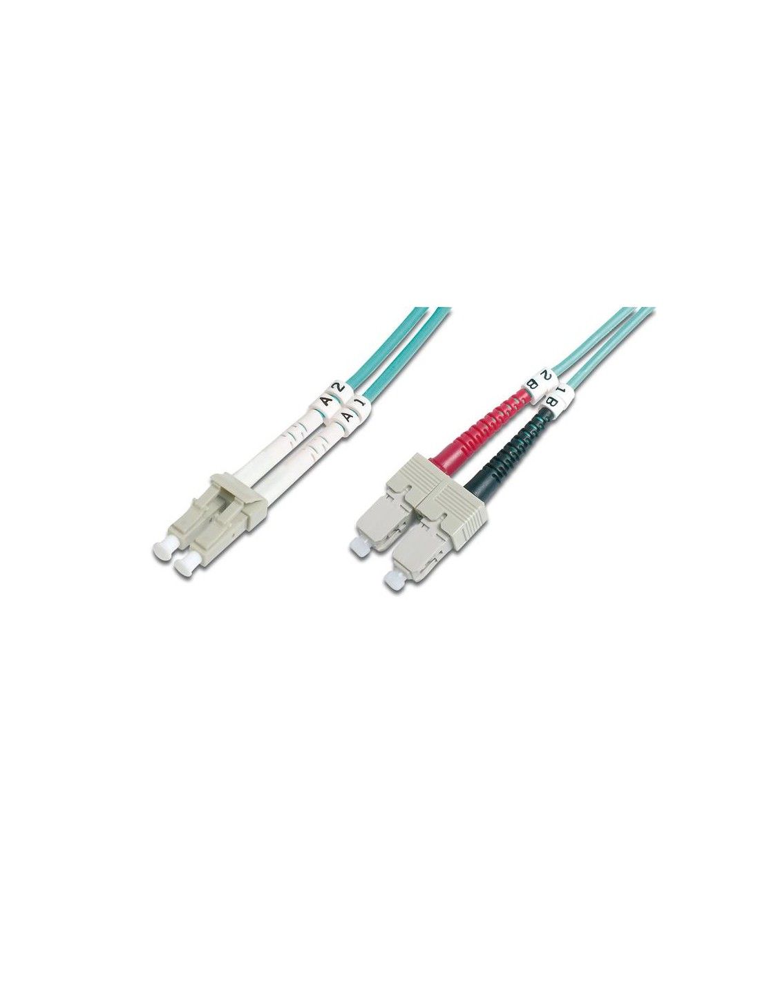 Digitus DK-2532-03-4. Lunghezza cavo: 3 m, Tipo di cavo: OFC, Connettore 1: LC, Connettore 2: SC, Diametro interno: 50 µm, Genere di connettore: Maschio/Maschio, Full duplex, Colore cavo: Turchese