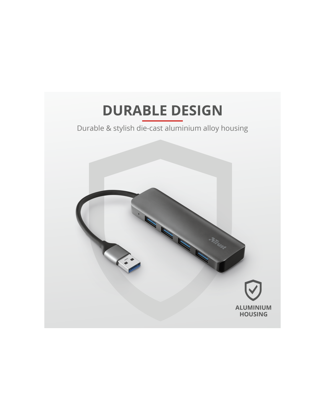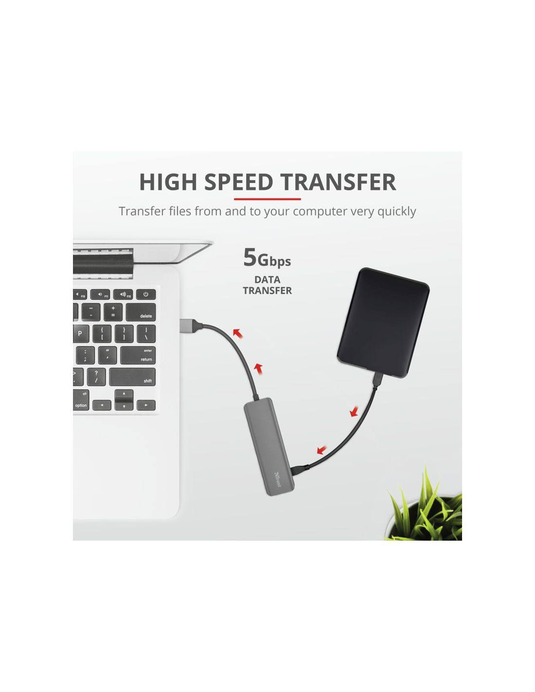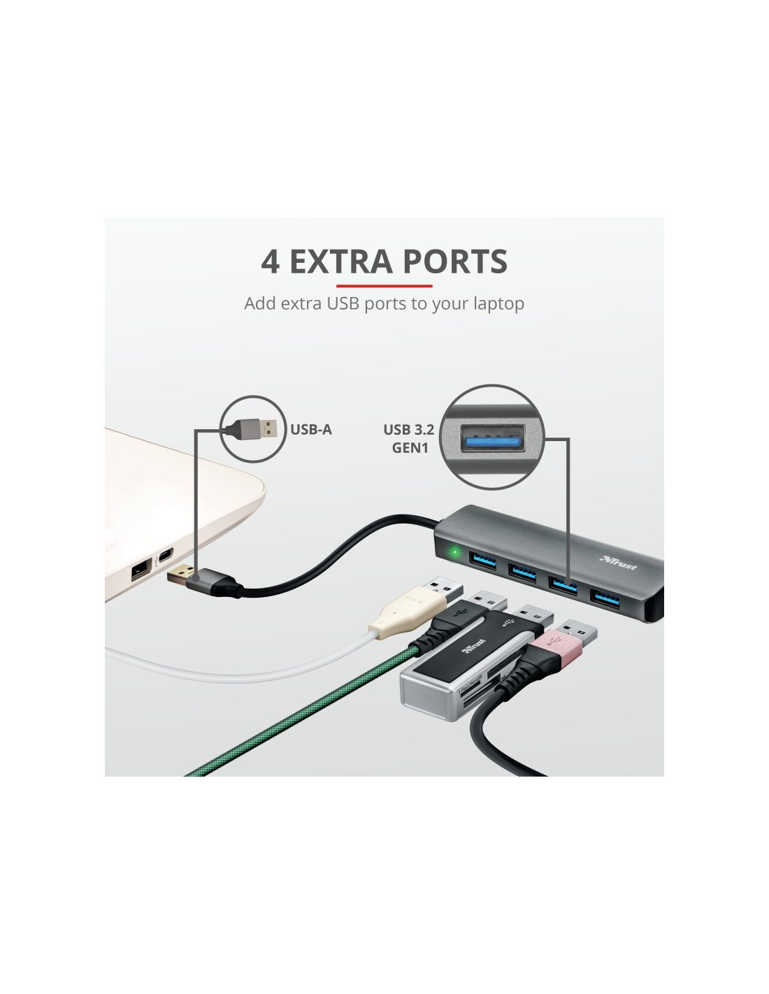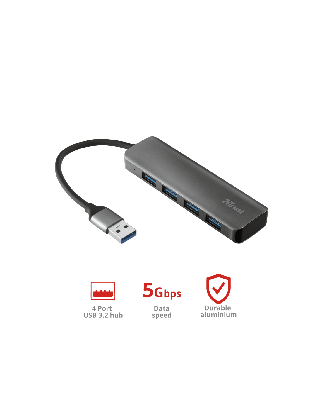 Il raffinato hub USB in alluminio aggiunge al computer 4 porte USB-A in più con una velocità di 5 Gbps