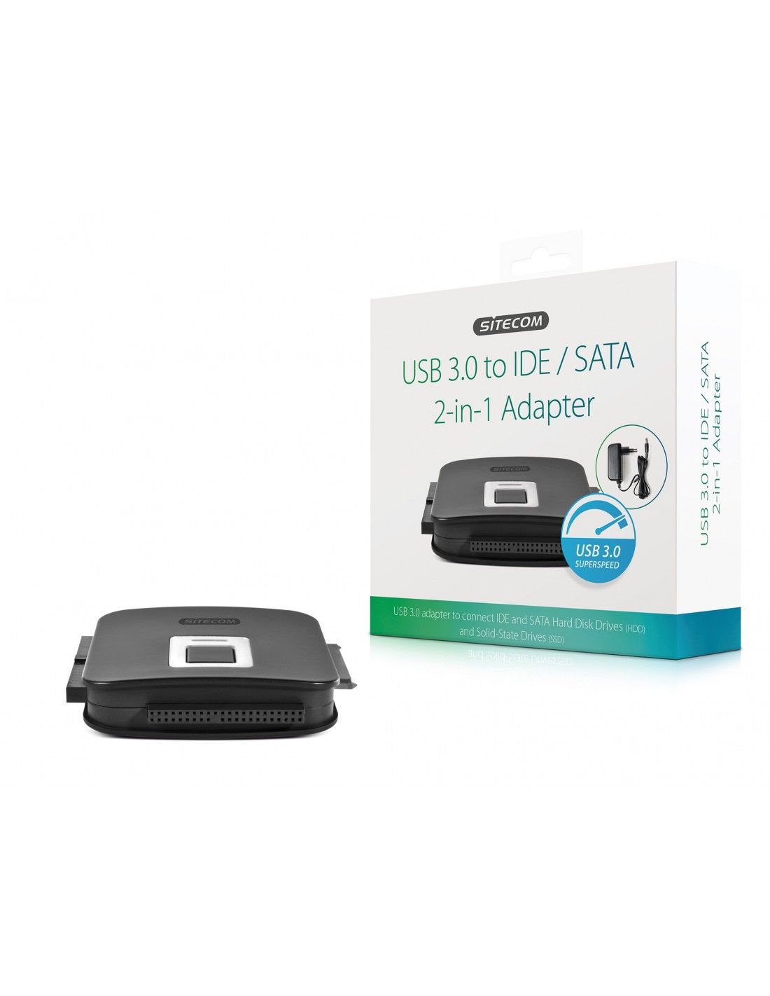 Il modello CN-334 USB 3.0 to IDE / SATA 2-in-1 Adapter di Sitecom permette di collegare dischi rigidi SATA e IDE per estendere la capacità di archiviazione dei Chromebook, MacBook o notebook Windows con facilità. L'adattatore è compatibile con dischi HDD (Hard Disk Drives) e SSD (Solid-State Drives)