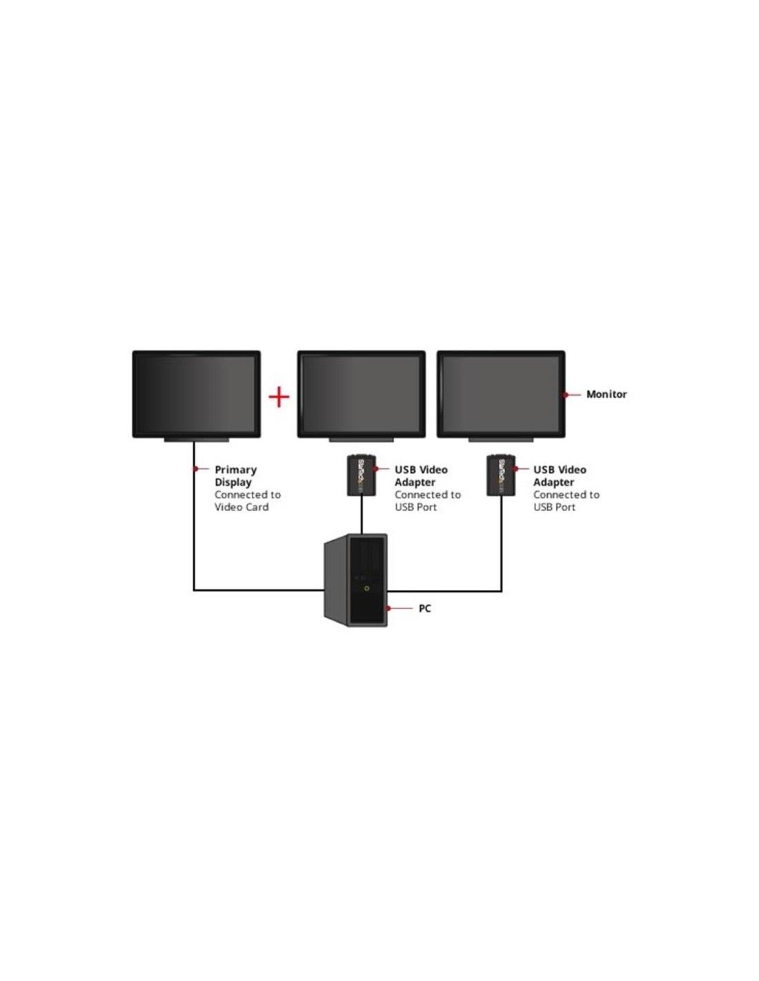 L'adattatore video USB, con fattore di forma ridotto, può essere utilizzato con massimo quattro (per un totale di cinque) adattatori video USB USB2VGAE3 aggiuntivi, per creare collegamenti VGA multipli e aggiungere schermi in modo rapido e semplice, tutto senza dover aprire il case del computer e installare schede video aggiuntive.