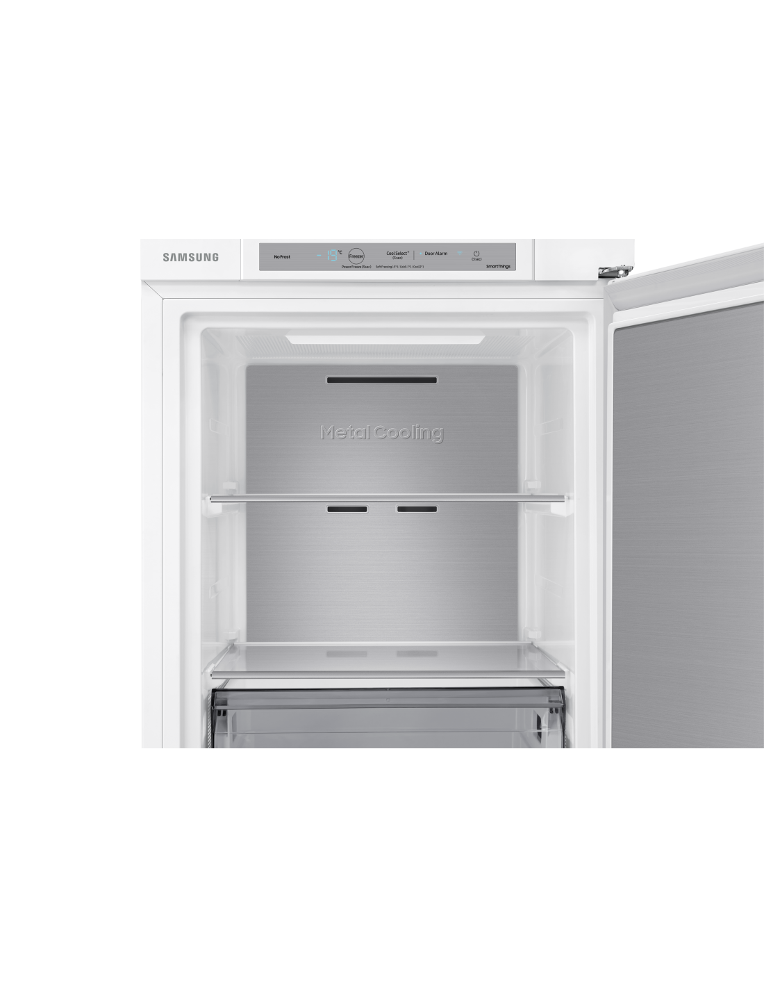 Risparmia tempo, fatica ed energia per la conservazione degli alimenti. Tieni sotto controllo e gestisci in modo semplice le prestazioni del congelatore in qualsiasi momento e dovunque utilizzando l'App SmartThings*. È disponibile una modalità AI Energy* che consente di monitorare e ridurre il consumo energetico fino a 10%**. Inoltre, il Metal Cooling ripristina rapidamente le perdite di calore.* Disponibile su dispositivi Android e iOS. Sono necessari una connessione Wi-Fi e un account Samsung.** Disponibile su modelli specifici tramite un aggiornamento Wi-Fi. Il consumo energetico viene ridotto ottimizzando il funzionamento e la velocità del compressore e regolando la temperatura del congelatore. I risultati si basano su test interni e possono variare a seconda delle condizioni e dei modelli di utilizzo.