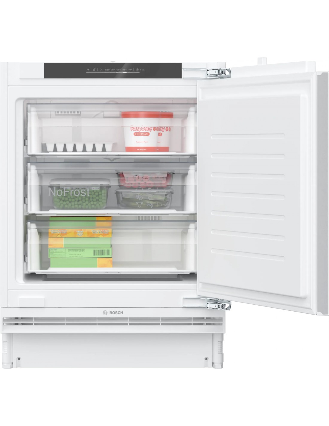 Bosch Serie 6 GUN21ADE0. Capacità netta congelatore: 85 L, Classe climatica: SN-T, Capacità di congelamento: 8 kg/24h, Autonomia senza energia elettrica: 9 h, Emissione acustica: 35 dB, Punteggio: 4*, Sistema No-frost. Cerniera porta: Destra. Classe efficienza energetica: E, Consumo energetico annuo: 189 kWh. Colore del prodotto: Bianco