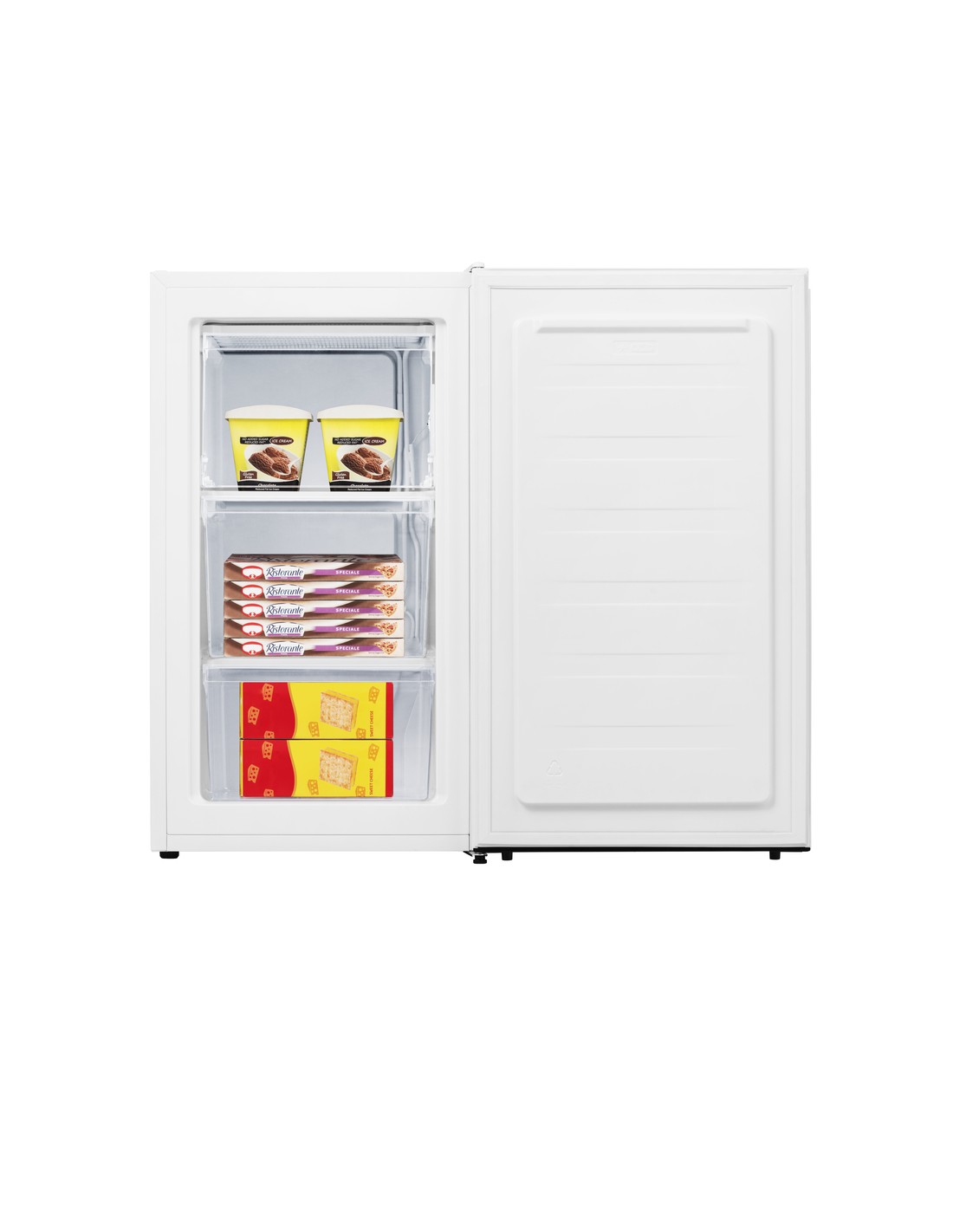 Congelatore Hisense FV78D4AWF. Misura (LxPxA) 50 cm x 45 cm x 84 cm. Suddiviso in 3. Cerniera porta a Destra.