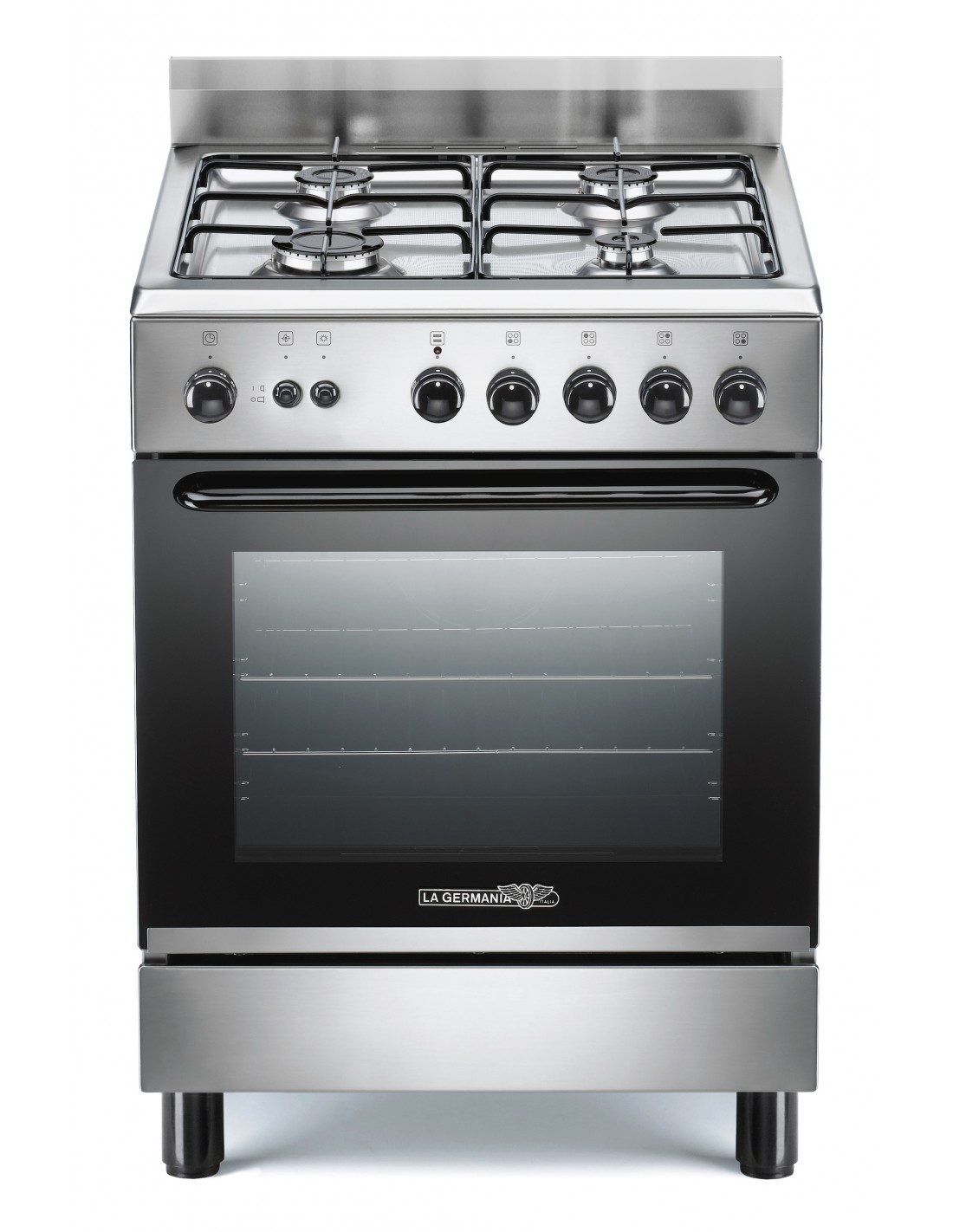 Bertazzoni La Germania Futura S64021X/24. Tipo di prodotto: Cucina, Colore del prodotto: Acciaio inox, Tipo di controllo: Manopola. Tipo di piano cottura: Gas, Numero totale di fuochi: 4 Fornello(i), Tipo di gas: Metano/GPL. Dimensione del forno: Media, Sorgente di alimentazione del forno: Gas, Capacità netta del forno: 56 L. Classe efficienza energetica: A+, Potenza aggregata (gas): 10500 W, Tensione di ingresso AC: 230 V. Larghezza: 600 mm, Profondità: 600 mm, Altezza: 858 mm