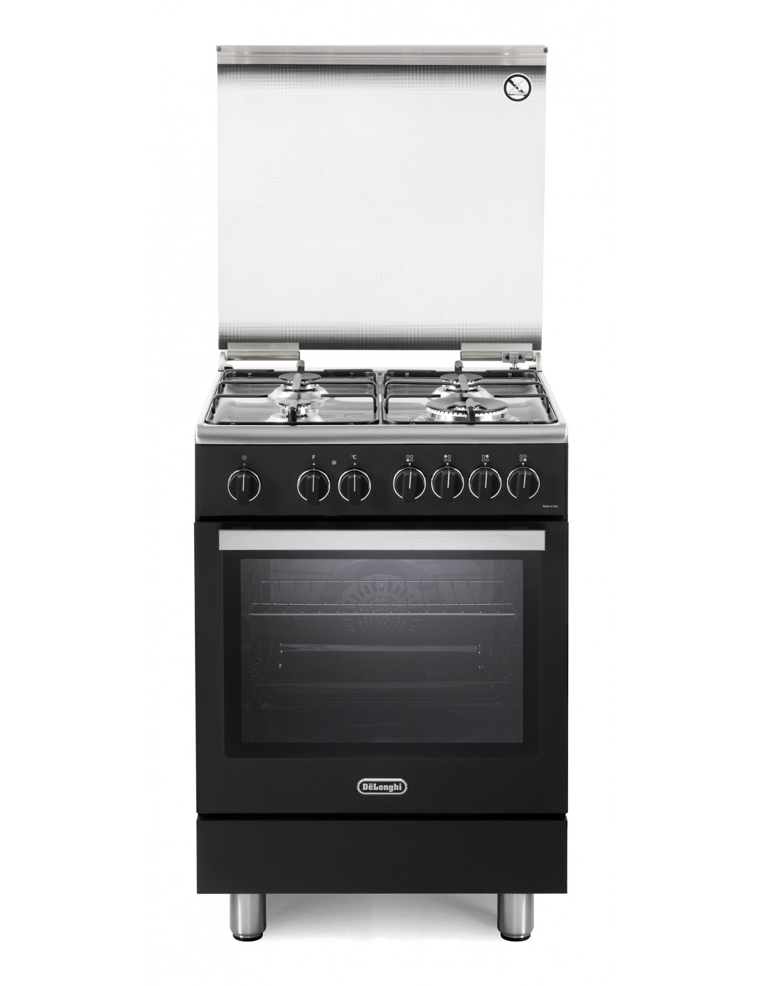 De’Longhi PEMA 64 LSG. Tipo di prodotto: Cucina, Colore del prodotto: Nero, Tipo di controllo: Manopola. Tipo di piano cottura: Gas, Numero totale di fuochi: 4 Fornello(i), Numero di fuochi: 4 Fornello(i). Dimensione del forno: Media, Sorgente di alimentazione del forno: Elettrico, Capacità netta del forno: 74 L. Tipo di timer del forno: Meccanico. Classe efficienza energetica: A, Consumo energetico (convenzionale): 0,92 kWh, Consumo energetico (convezione forzata): 0,82 kWh