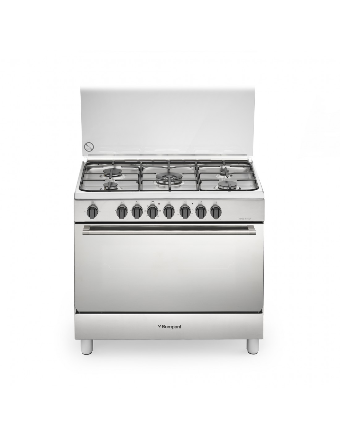 Cucina in acciaio 90x60 cm con piano gas, Griglie piatte smaltate nero opaco, accensione elettronica, sicurezza STOP-GAS, forno elettrico combinato 8 funzioni e programmatore meccanico fine cottura. PRODOTTA IN UNA FABBRICA ITALIANA.