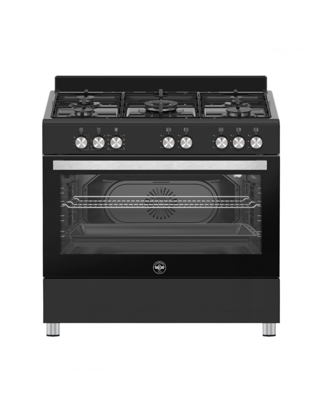 Bertazzoni La Germania Americana SE965EX24. Tipo di prodotto: Cucina, Colore del prodotto: Nero, Tipo di controllo: Manopola. Tipo di piano cottura: Gas, Numero totale di fuochi: 5 Fornello(i), Numero di fuochi: 5 Fornello(i). Dimensione del forno: Largo, Sorgente di alimentazione del forno: Elettrico, Capacità netta del forno: 97 L. Tipo di timer del forno: Meccanico. Tensione di ingresso AC: 220 - 240 V, Frequenza di ingresso AC: 50 Hz