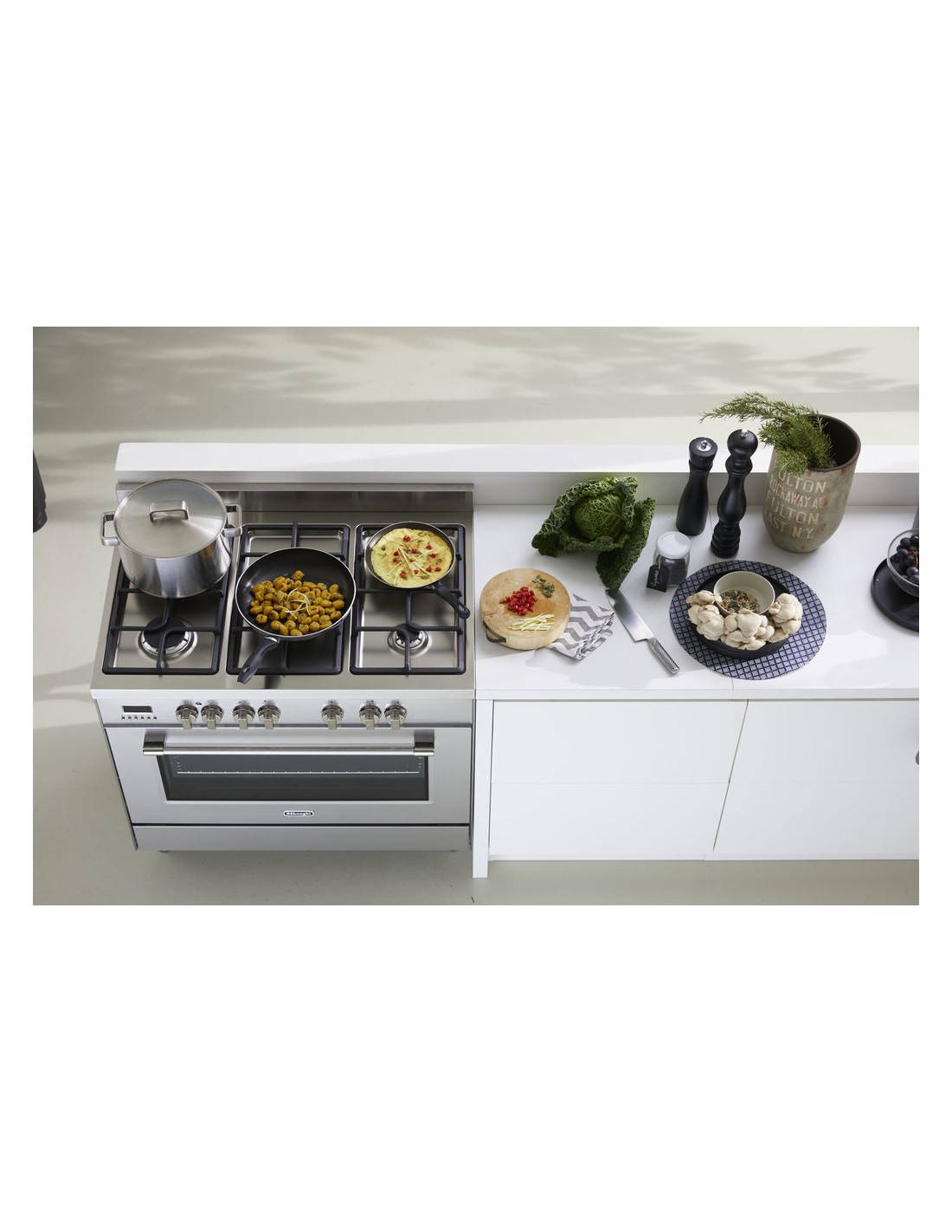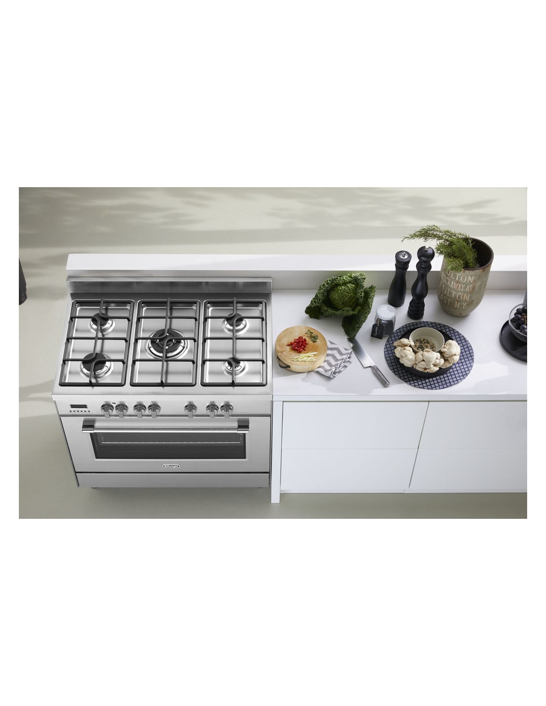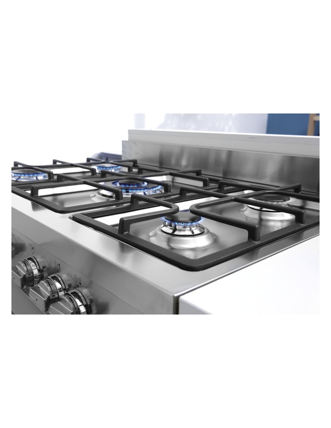 La particolare configurazione delle griglie tridenti in ghisa consente un’ottima stabilità delle pentole di qualsiasi dimensione mentre il pannello con comandi in acciaio inox e le manopole pro con ghiera esterna cromata conferiscono un design tipico delle cucine professionali.