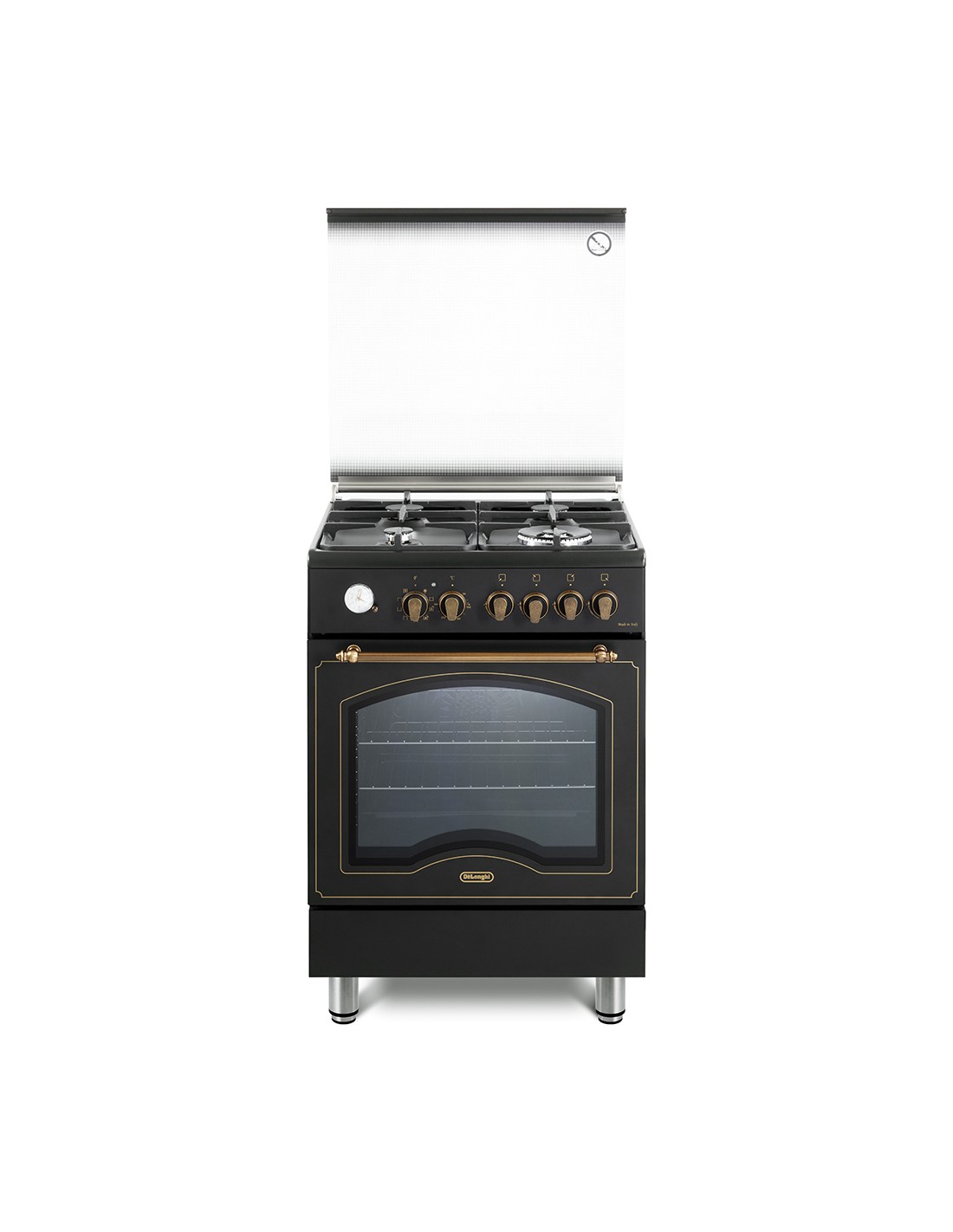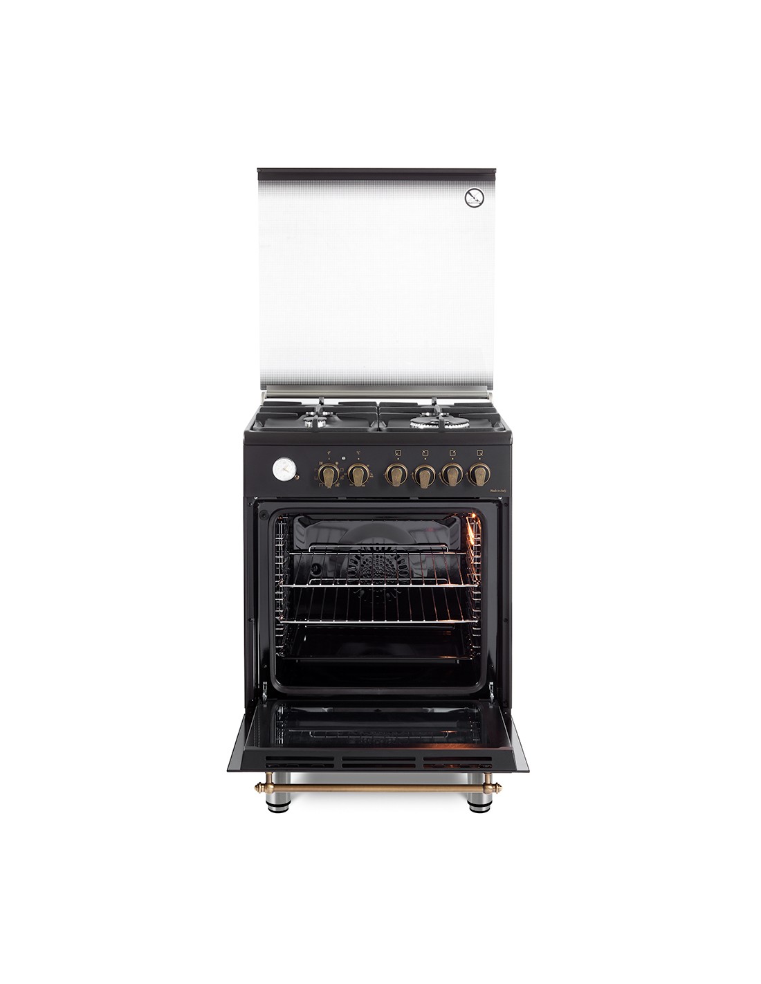 Cucina a libera installazione 60×60 cm, 4 bruciatori gas di cui un doppia corona, robuste griglie in ghisa, forno elettrico con speciale funzione a vapore Easy Steam e Idroclean.