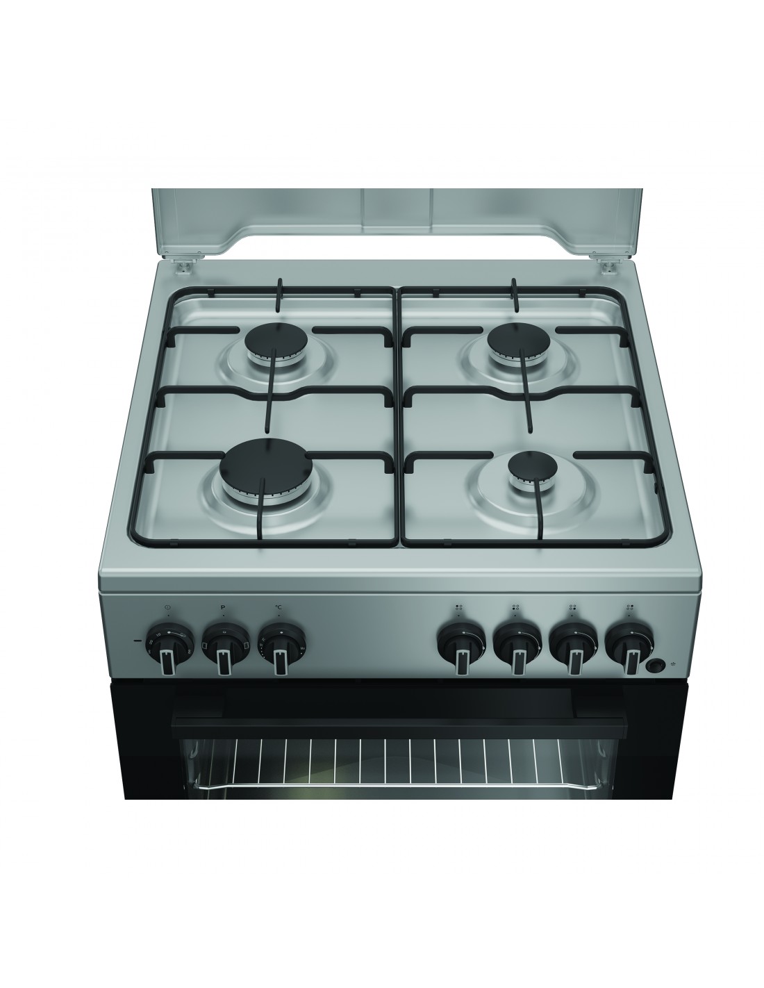 Indesit I6G3PMS. Tipo di prodotto: Cucina, Colore del prodotto: Acciaio inox, Tipo di controllo: Manopola. Tipo di piano cottura: Gas, Numero totale di fuochi: 4 Fornello(i), Tipo di superficie superiore: Acciaio inox. Dimensione del forno: Media, Sorgente di alimentazione del forno: Elettrico, Capacità netta del forno: 73 L. Tipo di timer del forno: Meccanico. Classe efficienza energetica: A, Consumo energetico (convenzionale): 0,82 kWh, Scala di efficienza energetica: Da A+++ a D