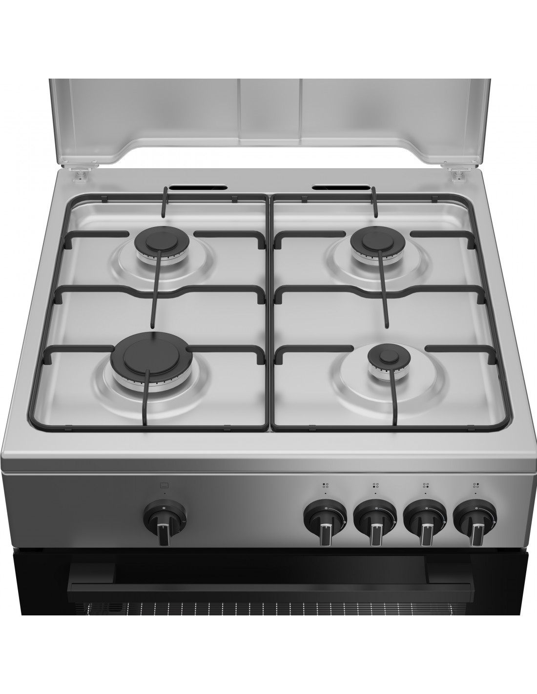 Indesit I6GGKMS. Tipo di prodotto: Cucina, Colore del prodotto: Acciaio inox, Tipo di controllo: Manopola. Tipo di piano cottura: Gas, Numero totale di fuochi: 4 Fornello(i), Tipo di superficie superiore: Acciaio inox. Dimensione del forno: Media, Sorgente di alimentazione del forno: Gas, Capacità netta del forno: 64 L. Tipo di timer del forno: Meccanico. Classe efficienza energetica: A+, Consumo energetico (convenzionale): 1,56 kWh, Consumo energetico (convenzionale): 5,6 MJ
