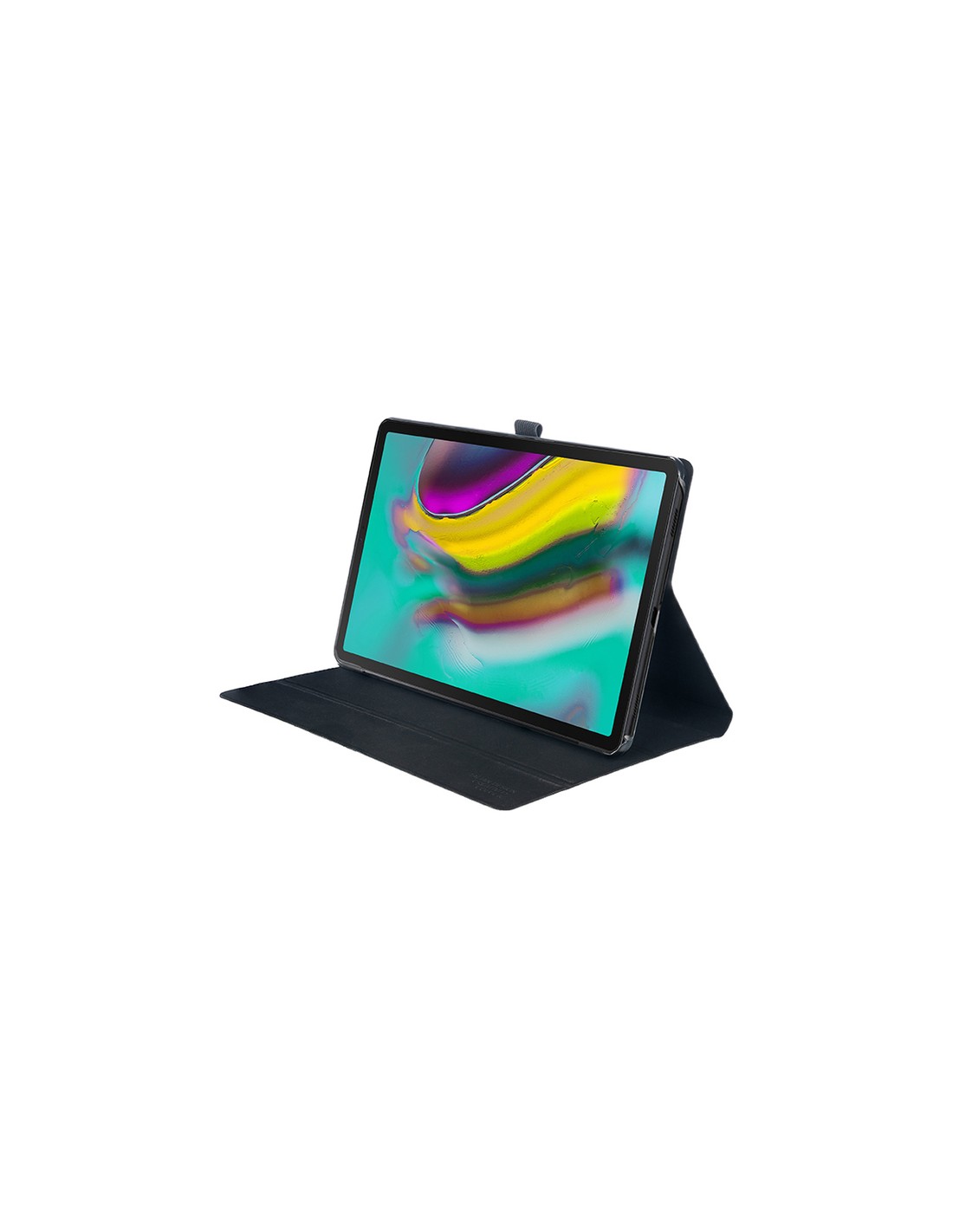 Custodia per Samsung Galaxy Tab S5E con scocca posteriore rigida, rivestimento in ecopelle ed interno in morbido materiale antigraffio. La copertina frontale si trasforma in un pratico e comodo standup per scrivere, guardare film e foto. Passante elastico per pennino.