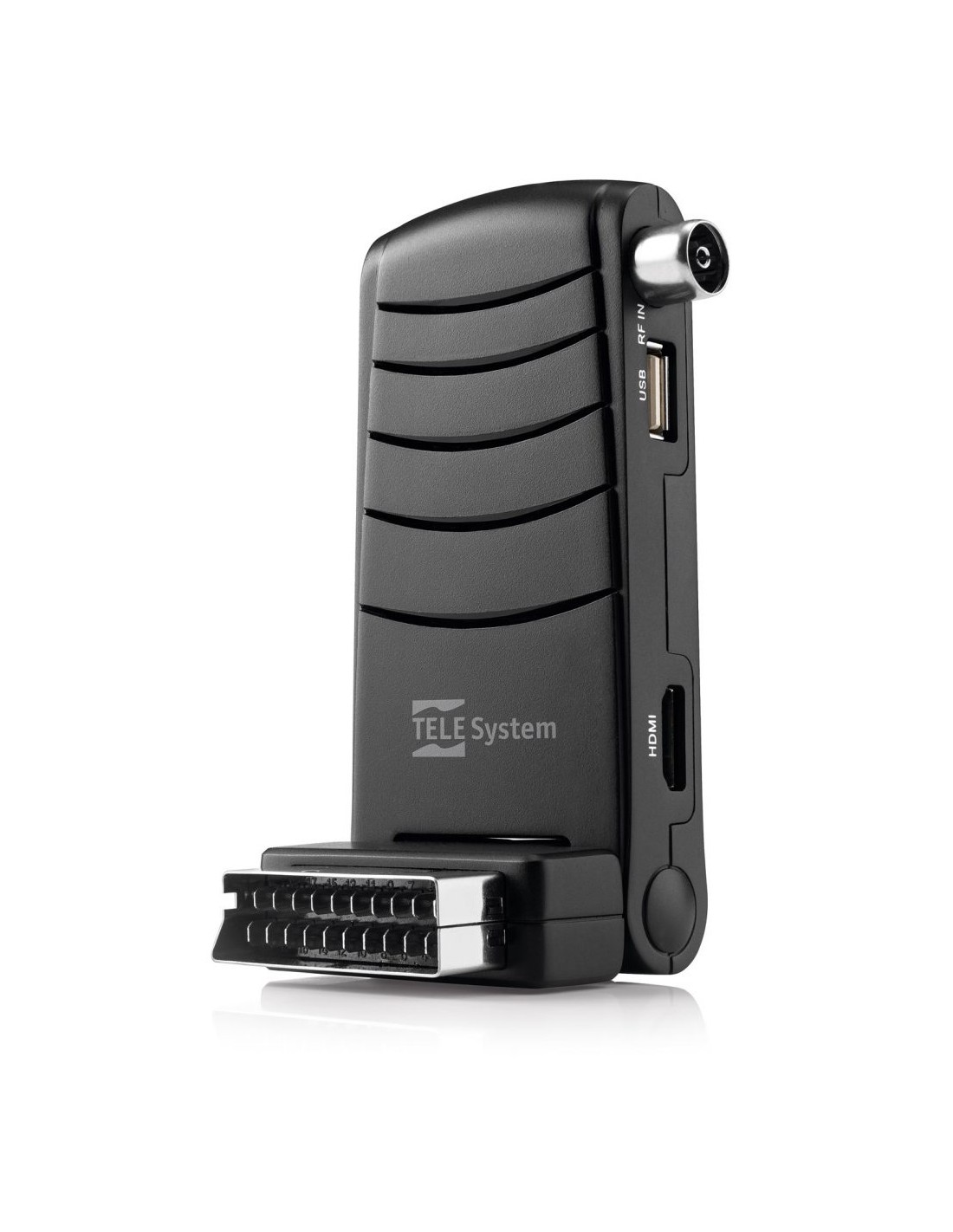 Il Ricevitore Digitale Terrestre TS6005 STEALTH si distingue per le dimensioni contenute pensato per essere installato direttamente alla presa SCART posta sul retro di un TV (o via HDMI).