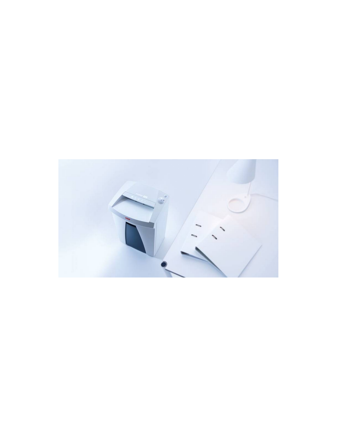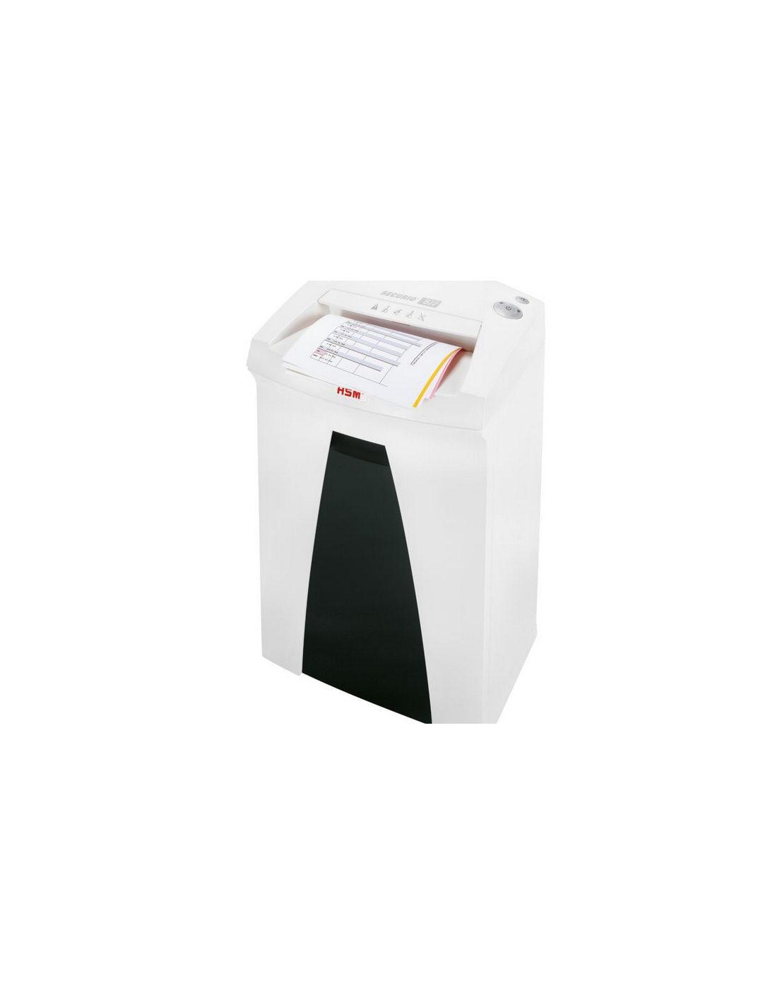 HSM Securio B22. Tipo di sminuzzamento: Taglio a particelle, Ampiezza di funzionamento: 24 cm, Dimensione di sminuzzamento: 3.9 x 30 mm. Consumi: 440 W. Dimensioni (LxPxA): 375 x 310 x 600 mm. Peso: 12,5 kg