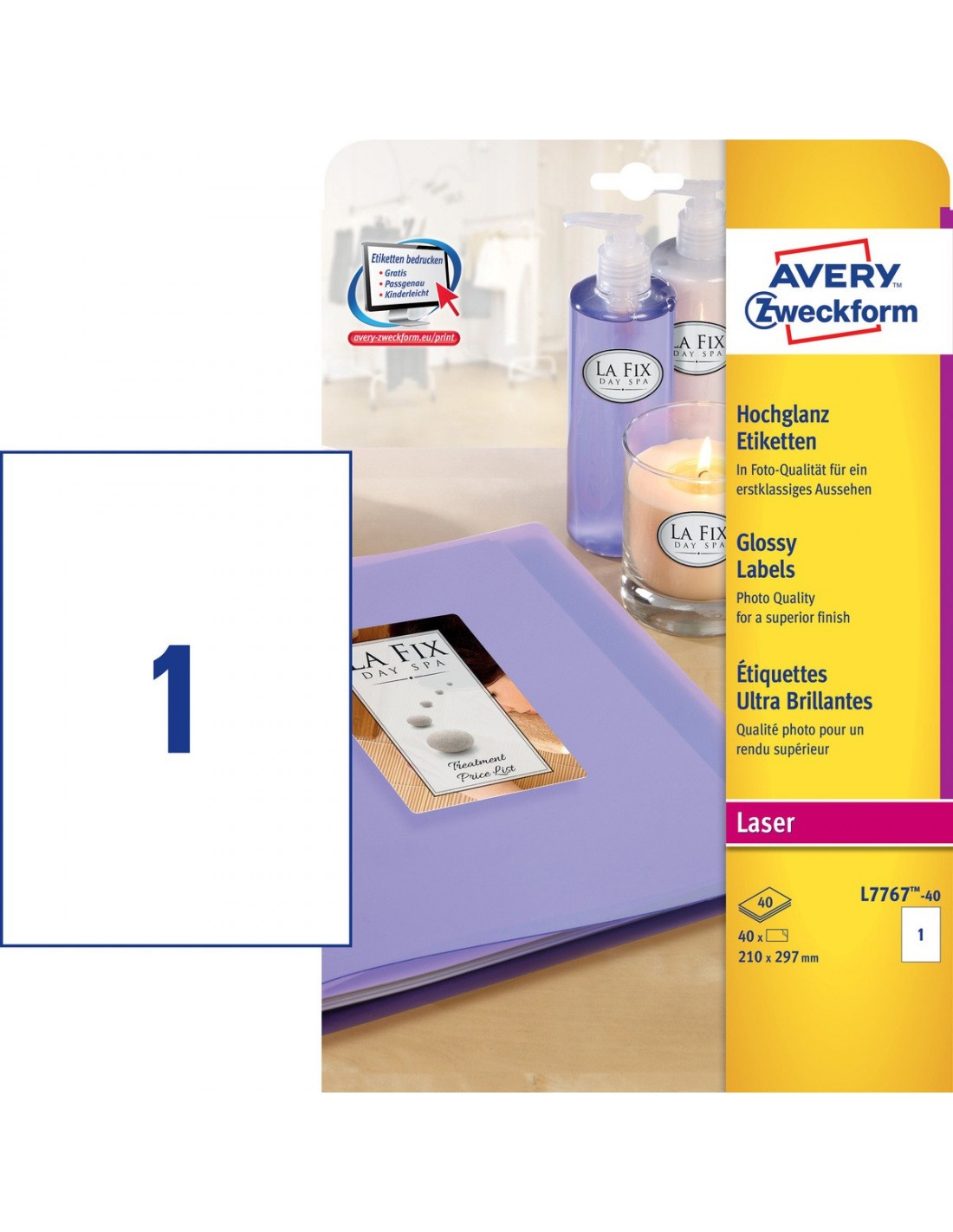 - Etichette glossy studiate per consentire una stampa a colori di alta qualità, danno un aspetto di altà qualità ai vostri file, brochure, cataloghi e prodotti per la vendita.