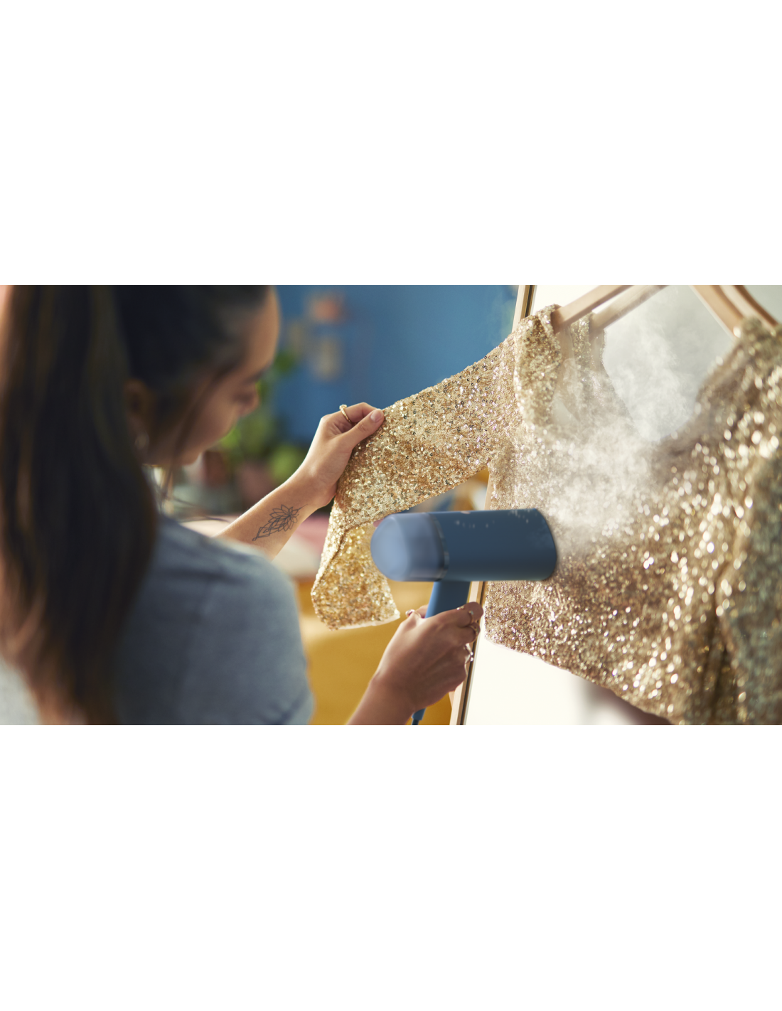Il vapore caldo del nostro sistema di stiratura a vapore portatile serie 3000 rinfresca i tuoi capi delicati rimuovendo istantaneamente gli odori. Lava meno, stira meno, risparmia energia e prolunga la durata dei tuoi capi!