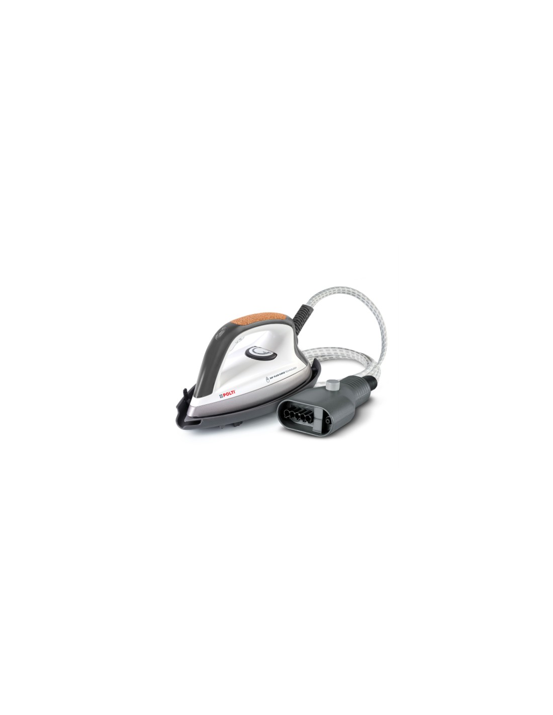 Polti Fluid Curve. Tipo: Vaporiera, Colore del prodotto: Grigio, Bianco, Colorazione superficie: Monocromatico. Larghezza: 195 mm, Profondità: 280 mm, Altezza: 165 mm. Accessori inclusi: iron rest-mat, Quantità per pacco: 1 pz
