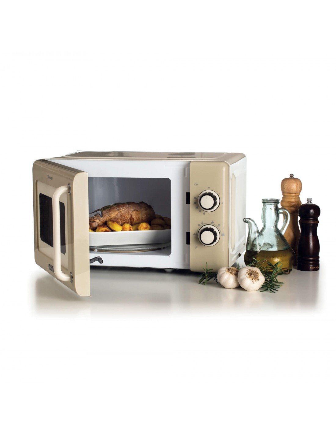 Il forno a microonde Vintage è ideale per qualsiasi momento della giornata: puoi cucinare le tue pietanze per il pranzo, dai primi piatti ai contorni; puoi scaldare le tue colazioni, come i croissant e il latte; e scongelare i cibi velocemente. Con la sua capacità di 20 litri e 800W puoi preparare tante pietanze e decidere tra i 6 livelli di cottura impostando anche il timer di cottura fino a 30 minuti. Con il design Vintage del forno a microonde e i suoi colori pastello puoi donare un tocco retrò e di raffinatezza alla tua cucina.