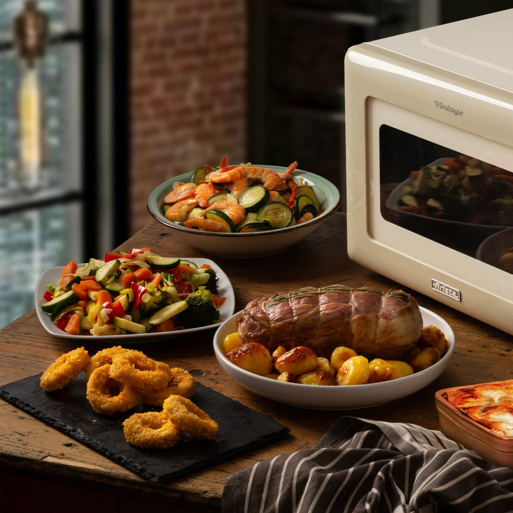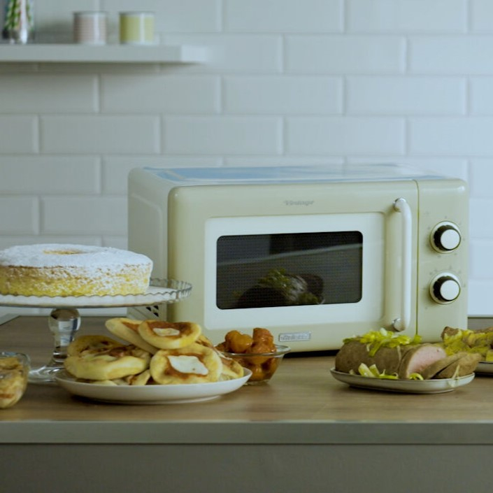 3 funzioni per ogni esigenza con Forno a microonde Vintage. Ideale per preparare colazioni, pranzi e cene senza fatica