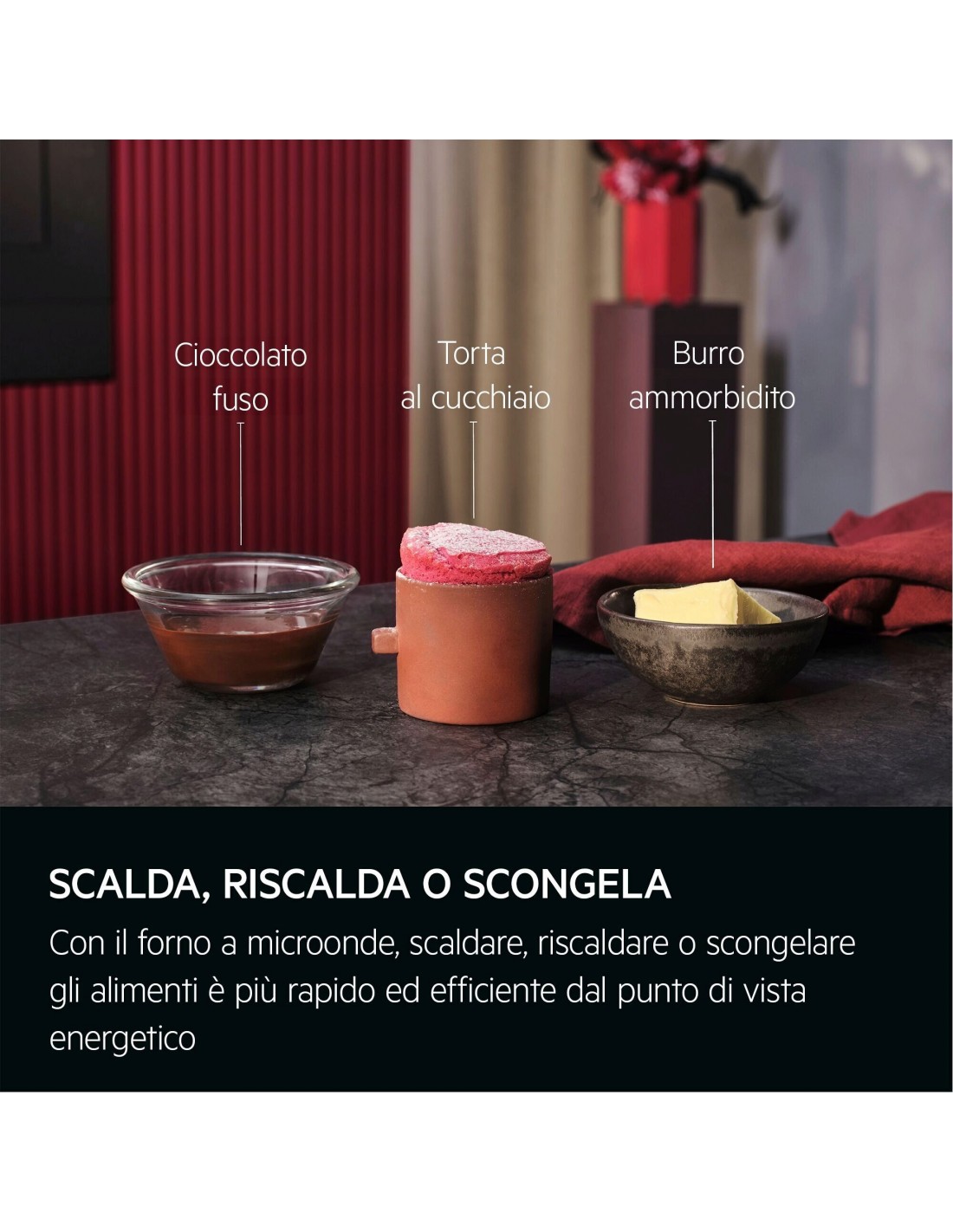 Tutto ciò che desideri da un forno a microonde, più una funzione grill per finire i piatti con deliziose croste croccanti. Il programma SteamSet incluso ti permette di preparare in modo efficiente pasti sani nel forno a microonde.