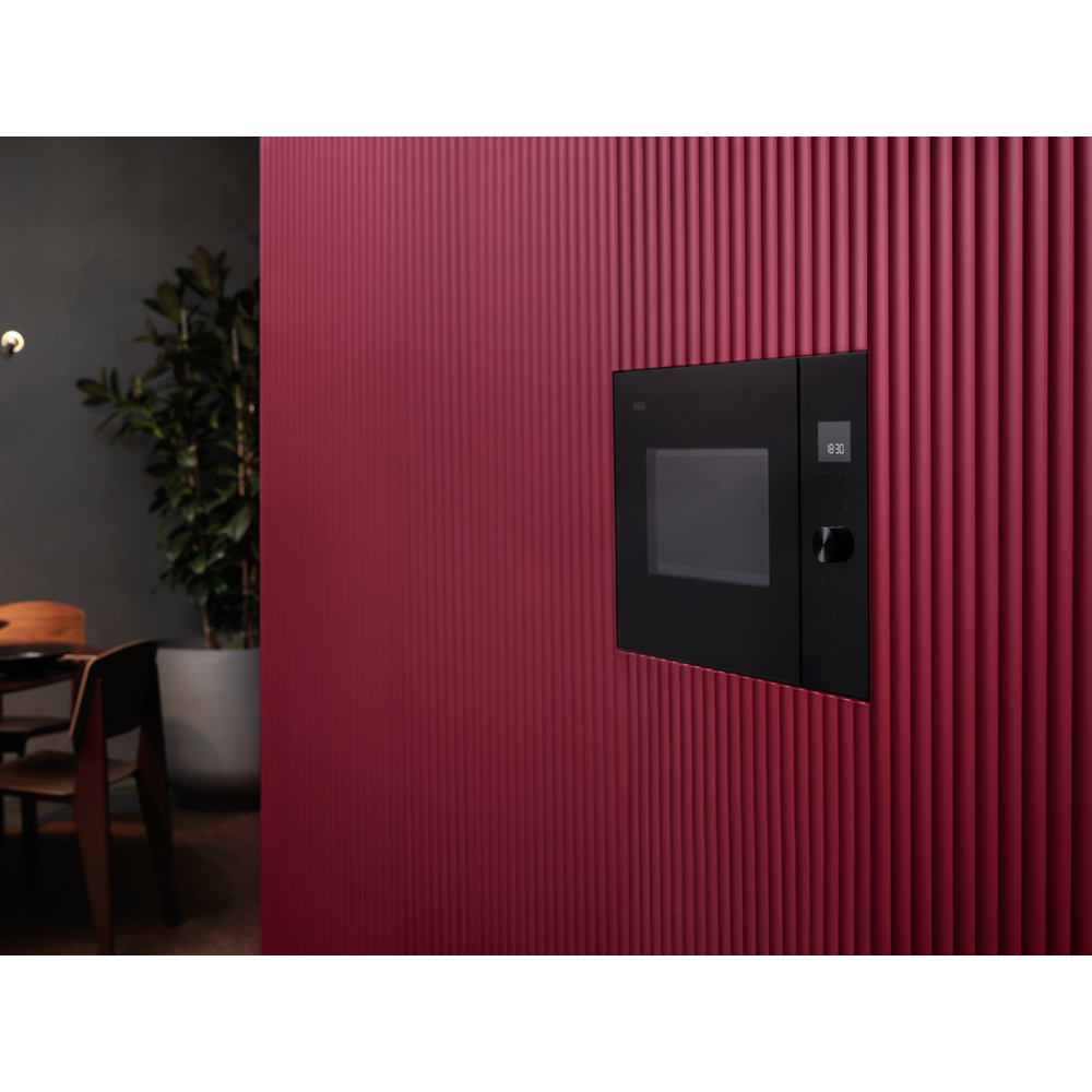 Il design elegante e minimalista del forno a microonde in nero lucido si abbina al forno e agli altri elettrodomestici.