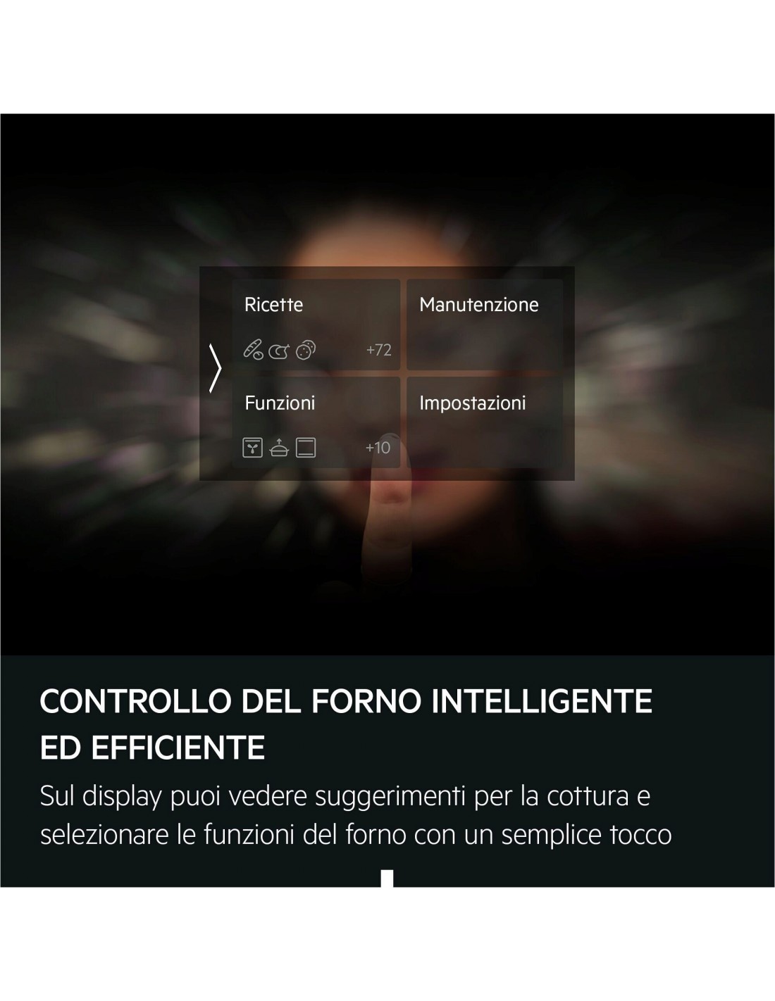 Ricevi consigli di cottura e seleziona le funzioni del forno dal display CookSmart Touch con navigazione a scorrimento. Con i consigli sul risparmio energetico, cucinerai in modo più efficiente. Puoi salvare sull'app i tuoi piatti preferiti e inviarli al forno premendo un tasto.