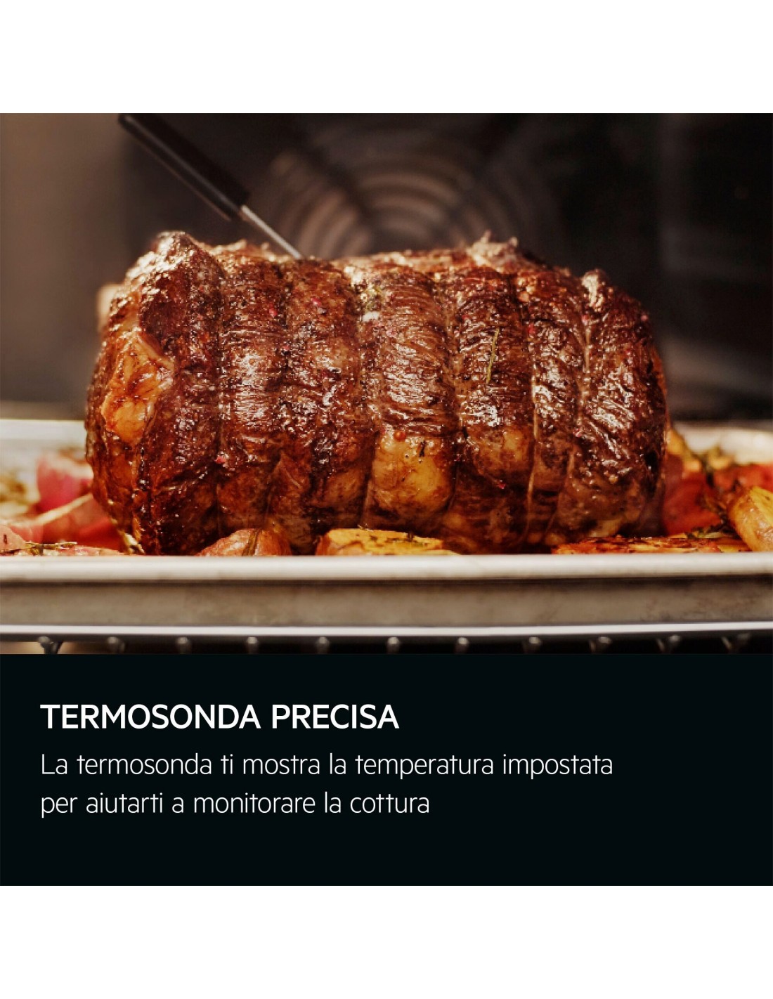 Il nuovo sensore alimenti segnala il raggiungimento della temperatura desiderata e consente di monitorare con precisione il processo di cottura per ottenere sempre risultati perfetti.