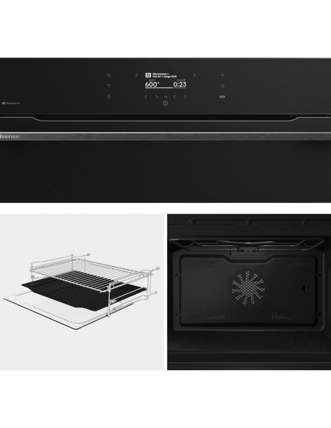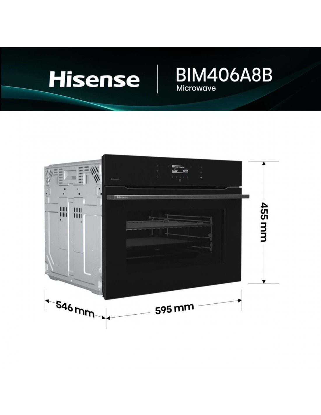 Hisense BIM406A8B. Dimensione del forno: Media, Tipo di forno: Forno elettrico, Capacità interna forno totale: 50 L. Posizionamento dell'apparecchio: Da incasso, Colore del prodotto: Nero, Tipo di controllo: Touch. Tipo di timer: Digitale. Scala di efficienza energetica: Da A+++ a D, Carico di collegamento: 3000 W, Tensione di ingresso AC: 220-240 V. posizione delle illuminazioni: Lato, Alto