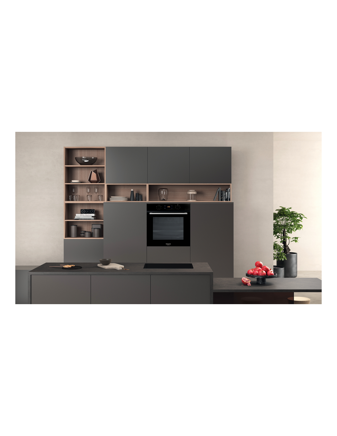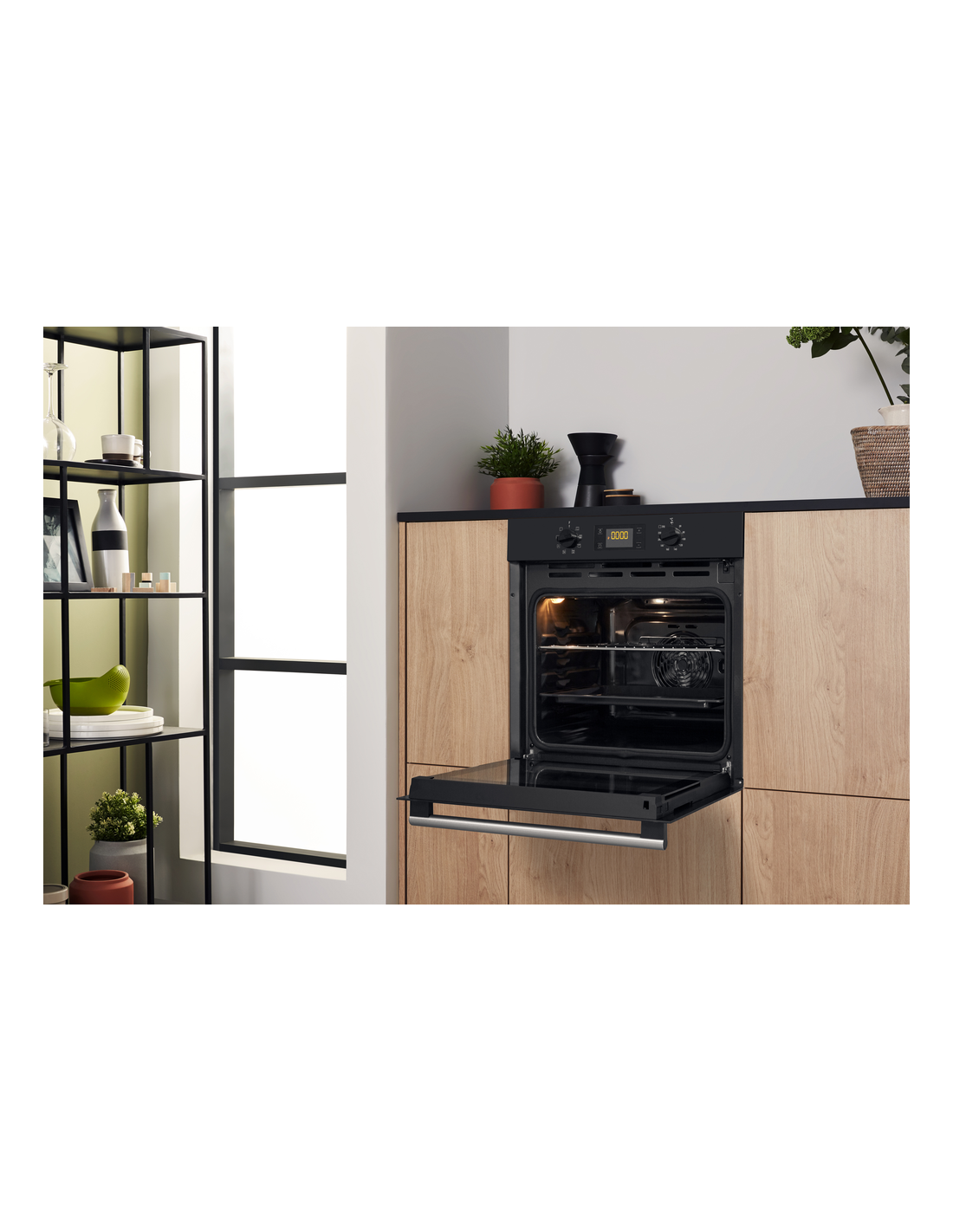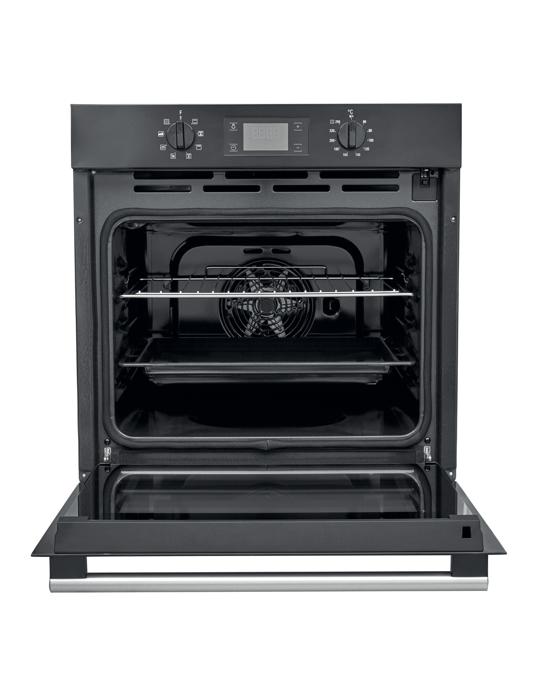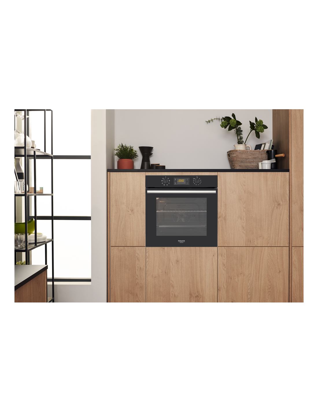 Hotpoint FA2 540 P BL HA. Dimensione del forno: Media, Tipo di forno: Forno elettrico, Capacità interna forno totale: 66 L. Posizionamento dell'apparecchio: Da incasso, Colore del prodotto: Nero, Tipo di controllo: Manopola, Touch. Classe efficienza energetica: A, Consumo energetico (convenzionale): 0,89 kWh, Consumo energetico (convezione forzata): 0,79 kWh. Larghezza del compartimento: 56,8 cm, Profondità del compartimento: 56 cm, Altezza del compartimento: 58,5 cm