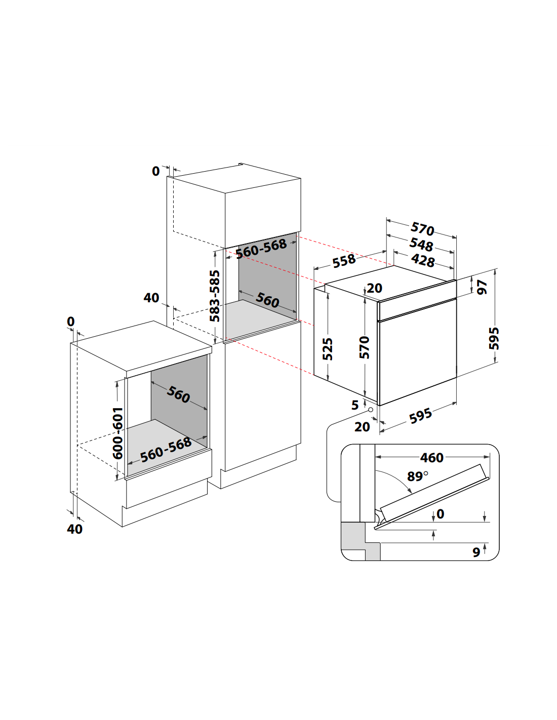 | Larghezza dello scomparto di installazione (min) | 56 cm |