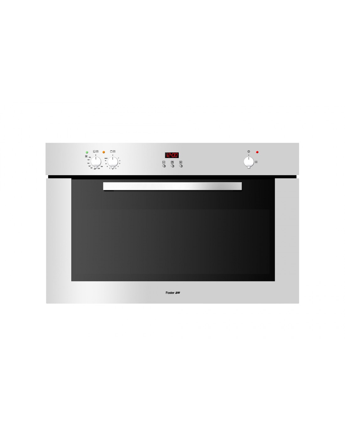 Foster KE 7193 047. Dimensione del forno: Largo, Tipo di forno: Forno a gas naturale, Capacità interna forno totale: 97 L. Posizionamento dell'apparecchio: Da incasso, Colore del prodotto: Acciaio satinato, Tipo di controllo: Pulsanti, Manopola. Tipo di orologio: Elettronico, Modalità di impostazione del timer: Tempo di fine cottura. Classe efficienza energetica: A, Consumo energetico (convenzionale): 2 kWh, Consumo energetico (convezione forzata): 2,06 kWh. Larghezza del compartimento: 86 cm, Profondità del compartimento: 56 cm, Altezza del compartimento: 58,5 cm