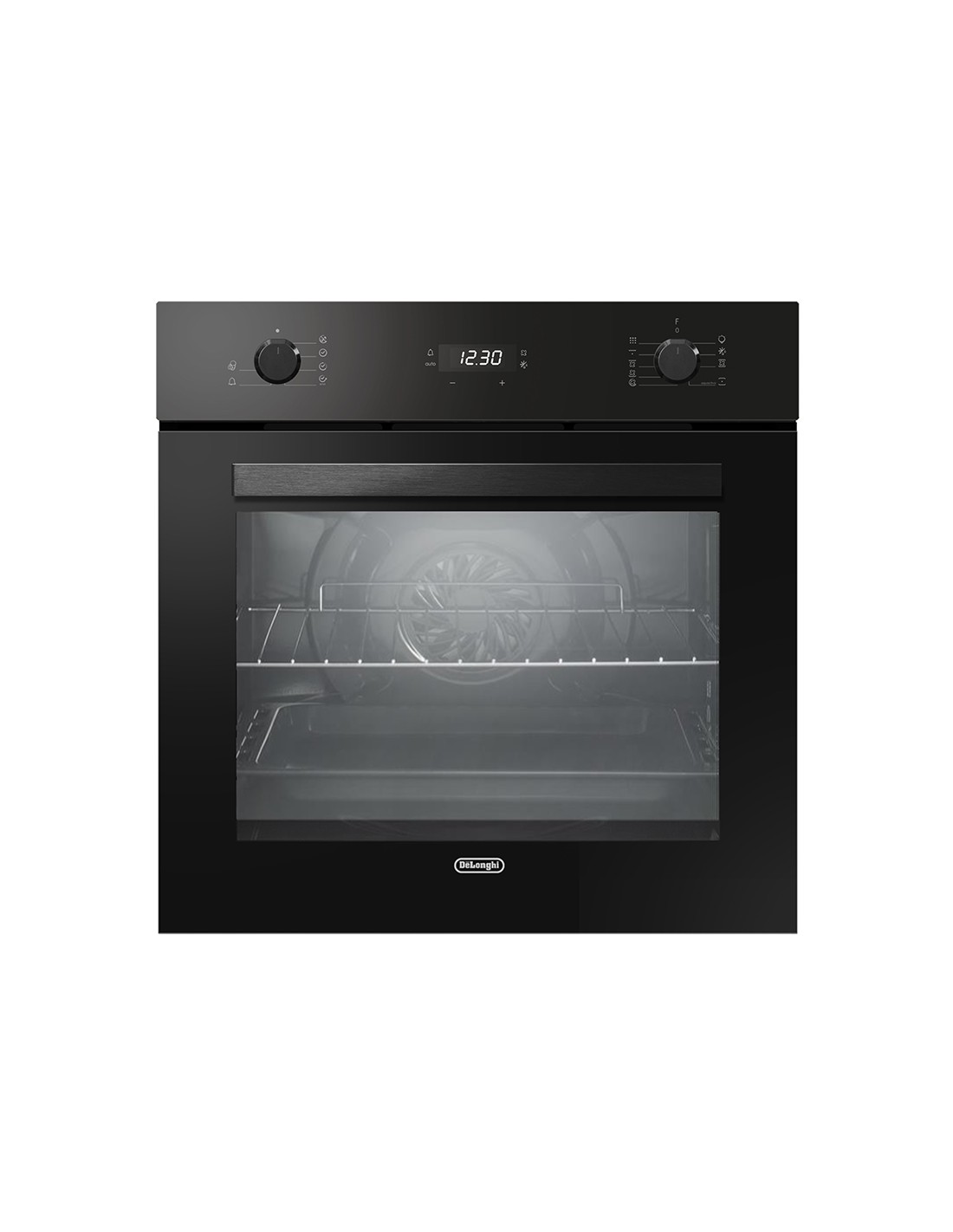 Forno elettrico multifunzione in vetro nero; cavità da 70 litri netti con telai laterali a 5 livelli di posizionamento; speciali funzioni di pulizia Pirolisi e Idroclean.