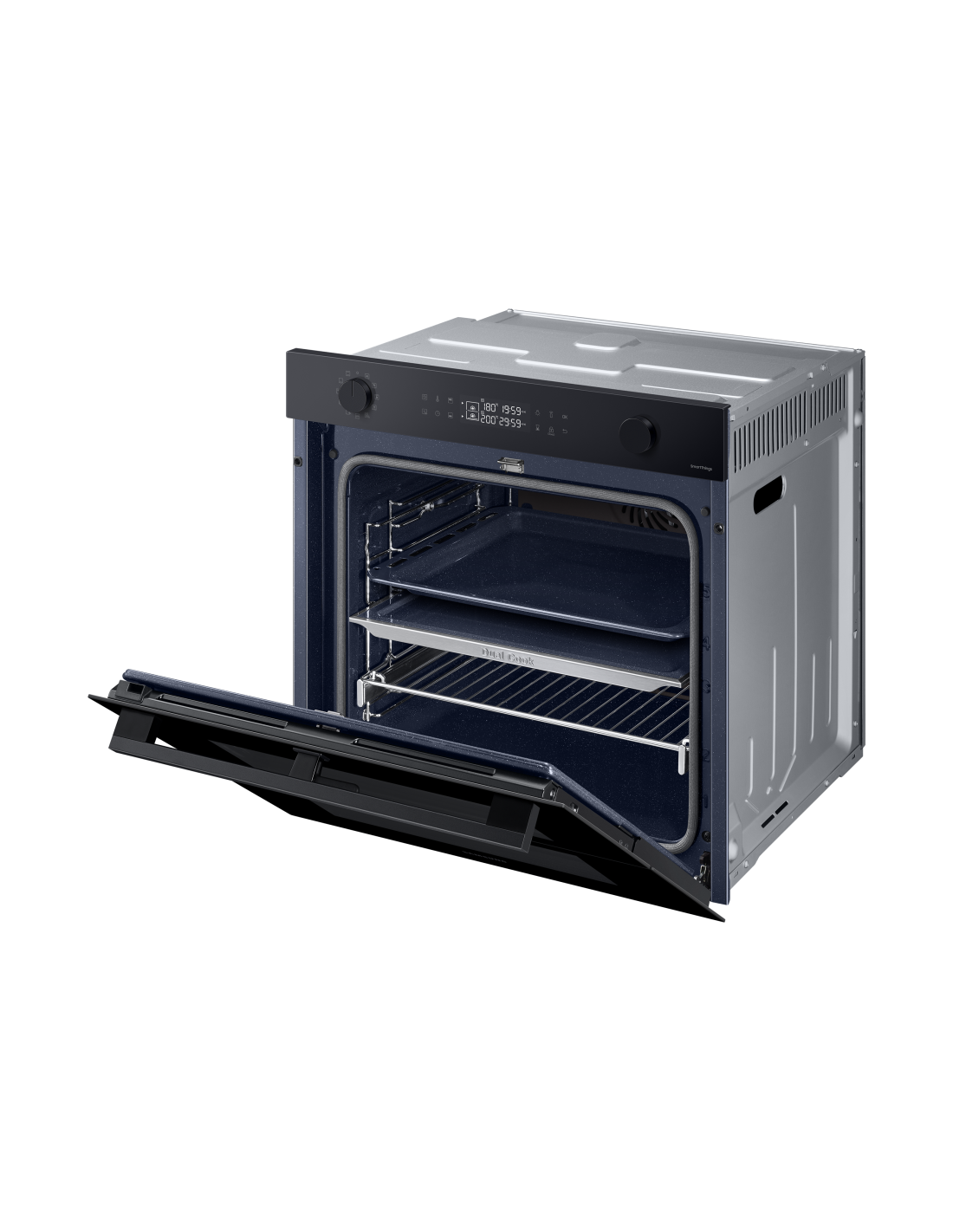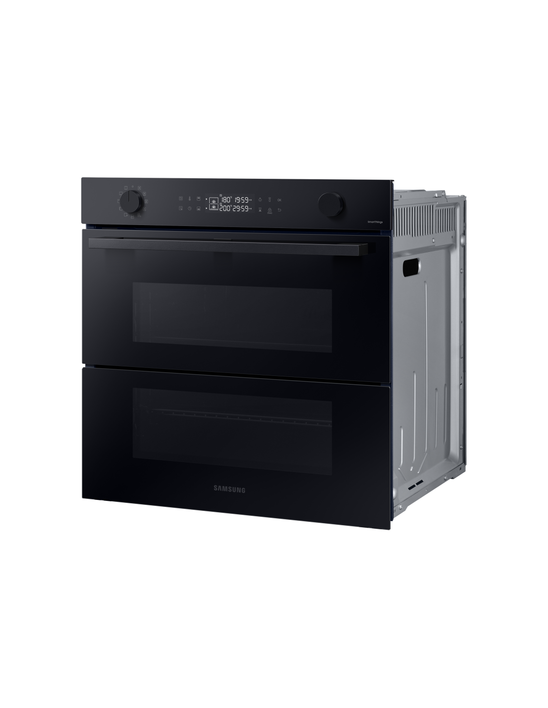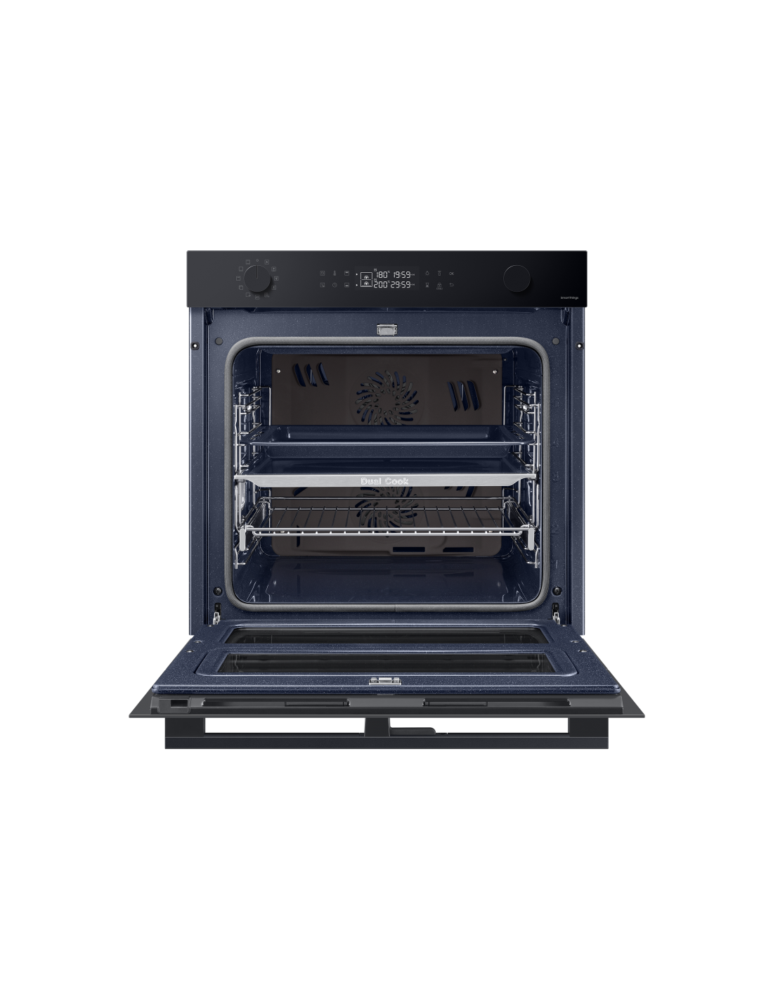 Prepara piatti diversi in modo più versatile ed efficiente. Le zone di cottura superiore e inferiore di Dual Cook Flex™ funzionano in modo indipendente. Utilizza la zona superiore per le pietanze più piccole, entrambe le zone con impostazioni diverse per temperatura e tempi di cottura, oppure l’intero forno per cibi voluminosi. Grazie alla doppia porta puoi accedere facilmente alla parte superiore.*Modello testato: NV7B5675LAK. * Consumo totale di energia ridotto del 25,3% e tempo di cottura ridotto del 22,7%, in base ai risultati di test condotti secondo il protocollo IEC-60350 (piccole torte, convezione a 165 ℃, in confronto all’intera cavità del forno). I risparmi effettivi variano a seconda dell’elemento di cottura, dell’uso e di altri fattori.