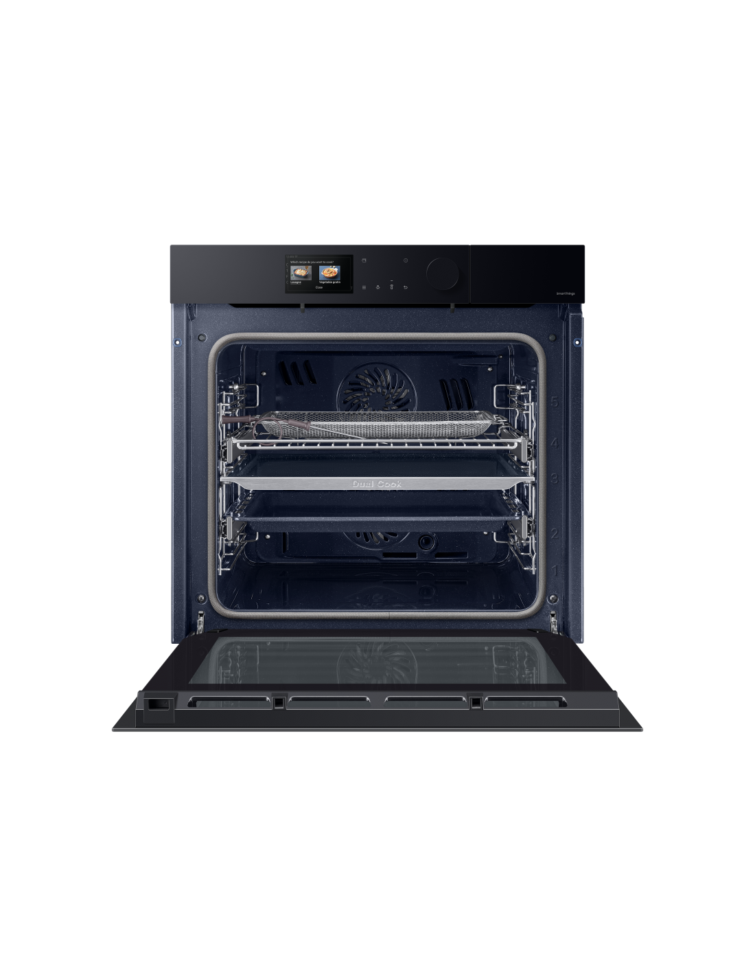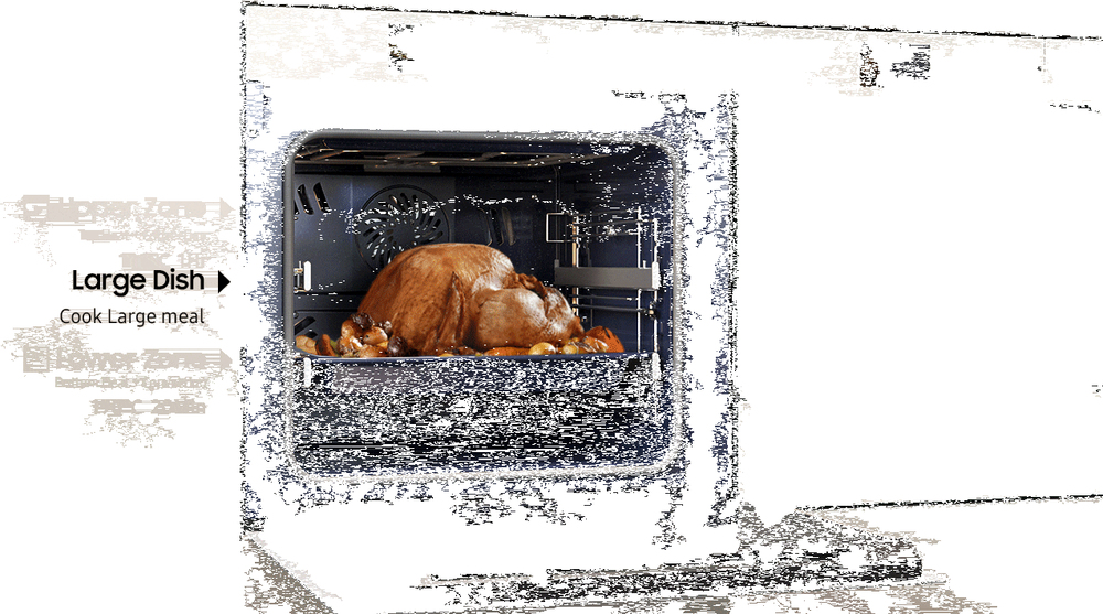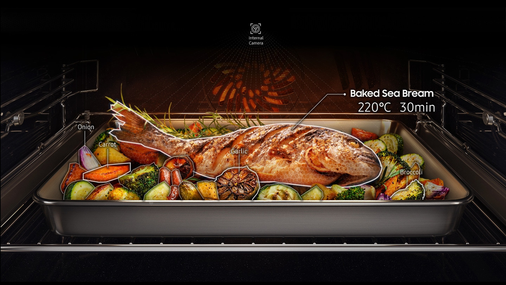Seleziona le tue ricette e porta in tavola pietanze deliziose in meno tempo. Utilizzando una videocamera interna**, la camera intelligente* riconosce gli ingredienti, ti suggerisce le ricette migliori e ottimizza le impostazioni***. Verifica inoltre la cottura dei piatti, insegnandoti a cucinare correttamente i vari alimenti e avvisandoti se rischi di bruciare le tue pietanze****.* Disponibile solo se si utilizza il menu Auto Cook. Tipologia e quantità di alcuni ingredienti non sono riconoscibili.** Disponibile per dispositivi Android e iOS. Sono necessari una connessione Wi-Fi e un account Samsung.*** Procedimento basato su un algoritmo creato tramite AI e non con apprendimento in tempo reale. Una volta individuati gli ingredienti e selezionata la ricetta, se occorre preriscaldare il forno, dovrai rimuovere temporaneamente gli alimenti. Se invece non occorre preriscaldare il forno, potrai procedere immediatamente alla cottura dei cibi individuati.**** Potrebbe non funzionare correttamente con specifici alimenti di colore scuro o se la presenza di un coperchio non consente il riconoscimento del contenuto. In questi casi, controlla tu stesso lo stato di cottura.∗ Scena rappresentata a solo scopo illustrativo. Le immagini presentate possono essere diverse da quelle acquisite dalla fotocamera.