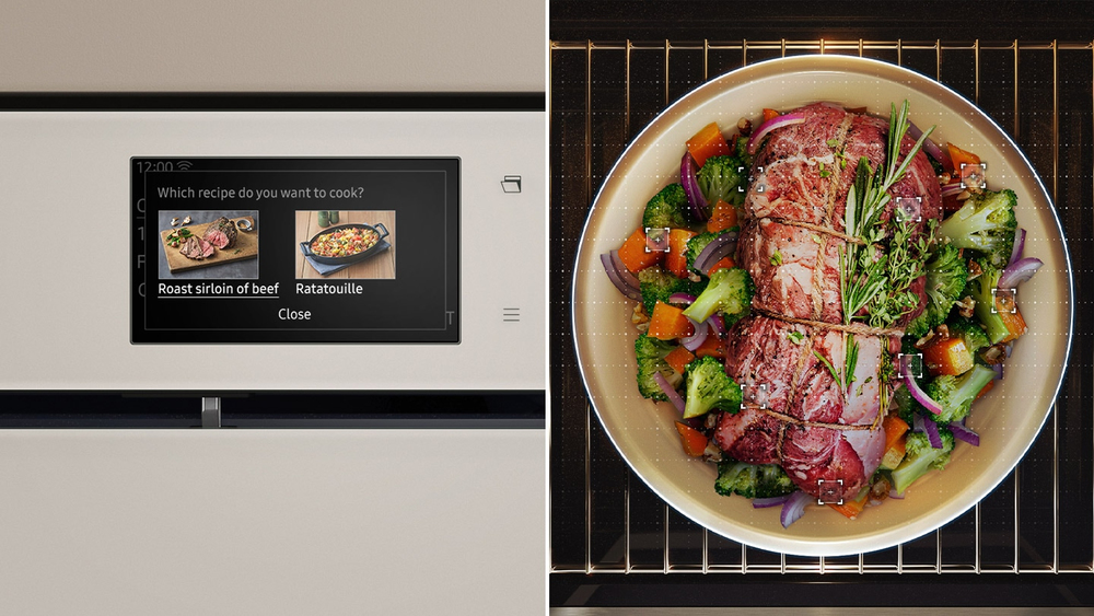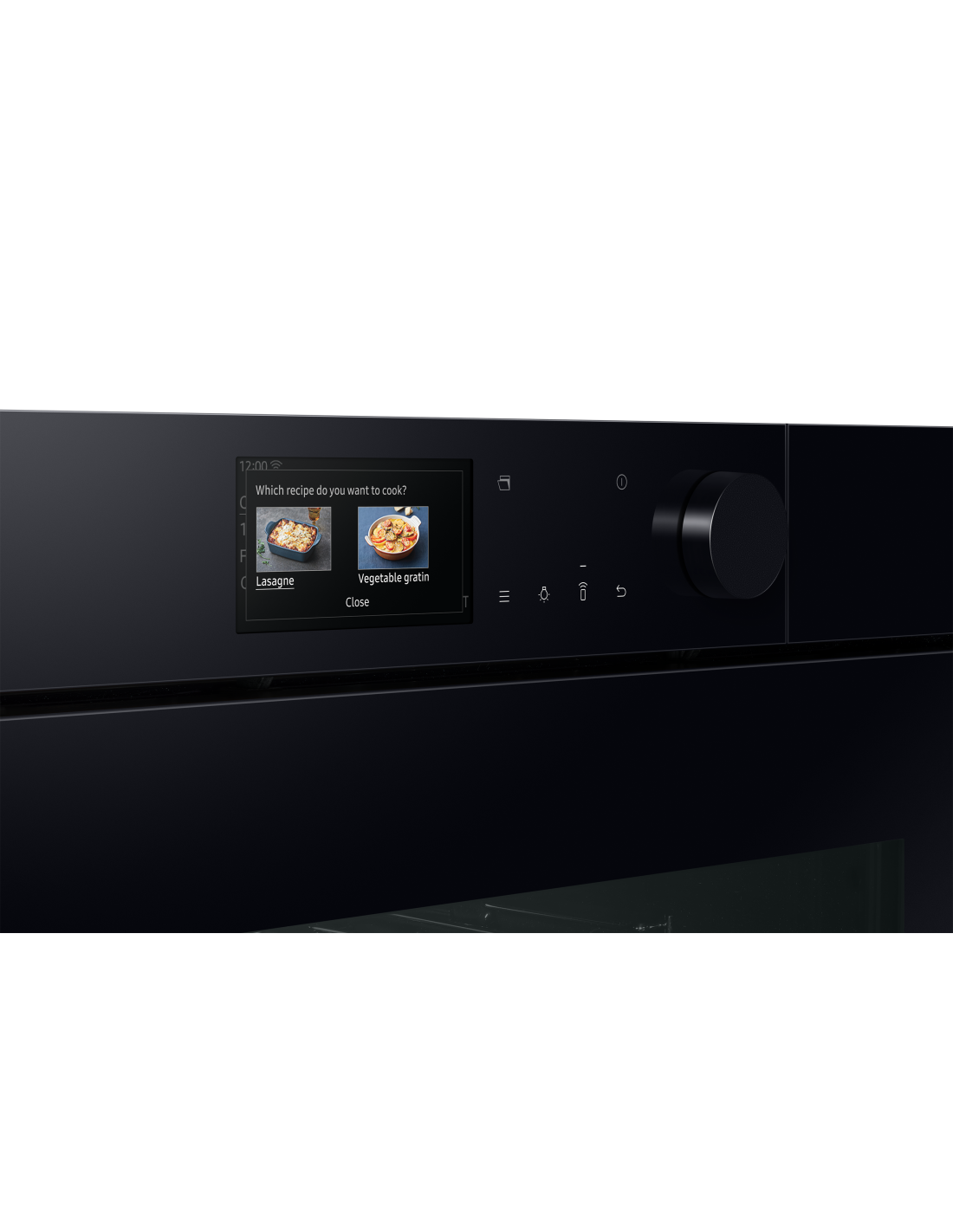 Dedicati alla cucina in modo più facile, divertente e condivisibile e prepara pietanze da chef grazie all'intelligenza artificiale (AI) di AI Pro Cooking*. Puoi visualizzare e controllare l'interno del forno da remoto, e creare video in time lapse durante la cottura dei tuoi piatti. Ti suggerisce ricette in base al riconoscimento*** degli ingredienti e ottimizza le impostazioni.* Disponibile solo su alcuni modelli.** Disponibile per dispositivi Android e iOS. Sono necessari una connessione Wi-Fi e un account Samsung.*** Per ottimizzare la funzione di riconoscimento, il piatto va posizionato al centro del forno. La precisione di riconoscimento può variare in base alle effettive condizioni di utilizzo, ad esempio al tipo di ingredienti, alla pulizia del vano del forno e all'intensità della luce ambiente. Per maggiori informazioni si rimanda al manuale d'istruzioni presente all'interno della confezione.∗ Scena rappresentata a solo scopo illustrativo. Le immagini presentate possono essere diverse da quelle acquisite dalla fotocamera.