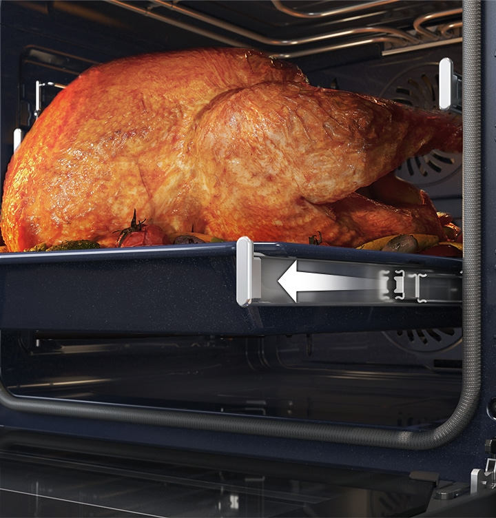 Inserisci ed estrai le teglie dal forno molto più facilmente. La guida telescopica scorre in modo fluido, consentendoti di estrarre e inserire agevolmente nel forno anche teglie molto ingombranti o pesanti. In questo modo si crea molto meno attrito ed è più semplice inserire i recipienti ed estrarli. E puoi girare e condire i cibi senza il rischio di schizzare ovunque.*Le specifiche possono variare in base al modello.