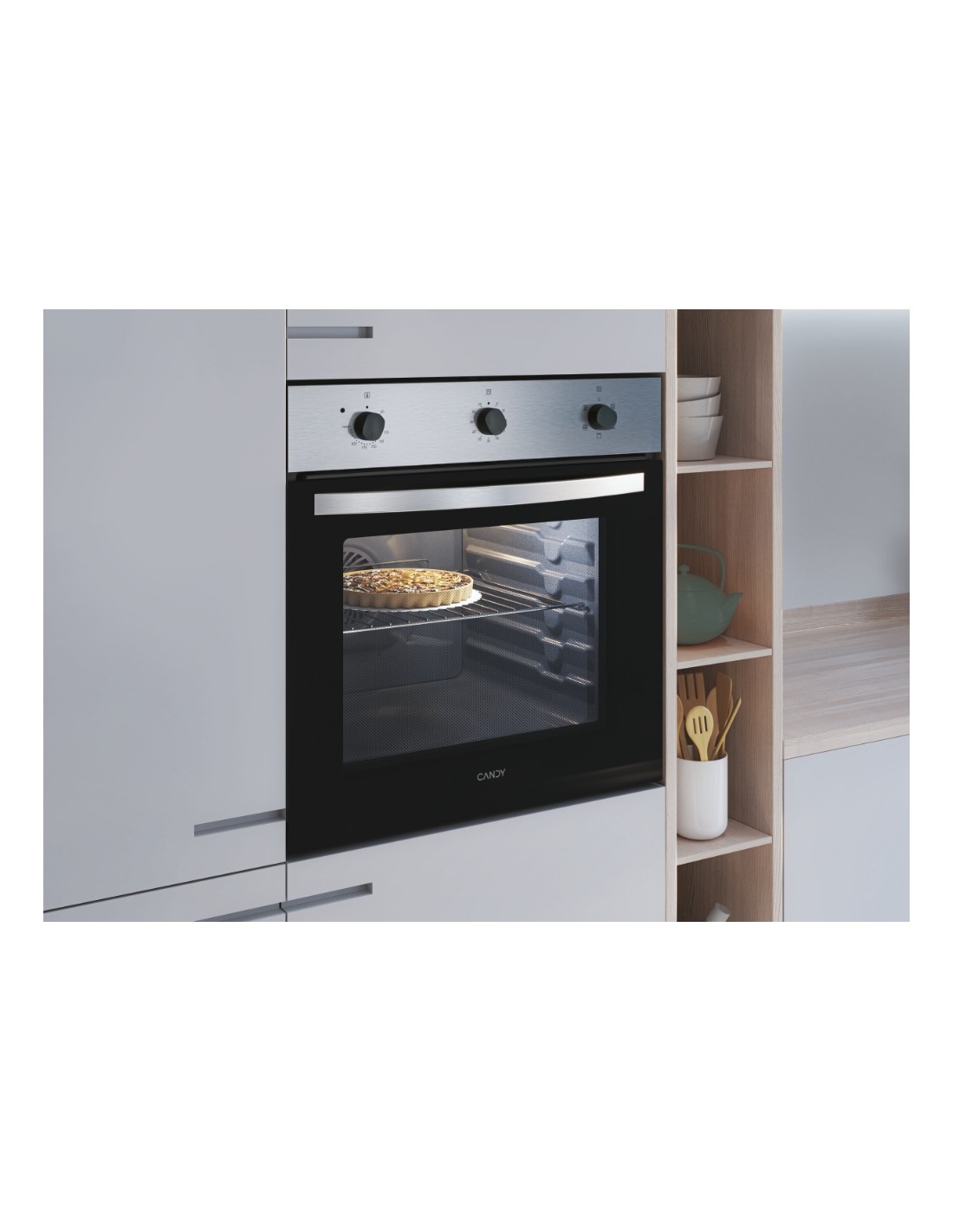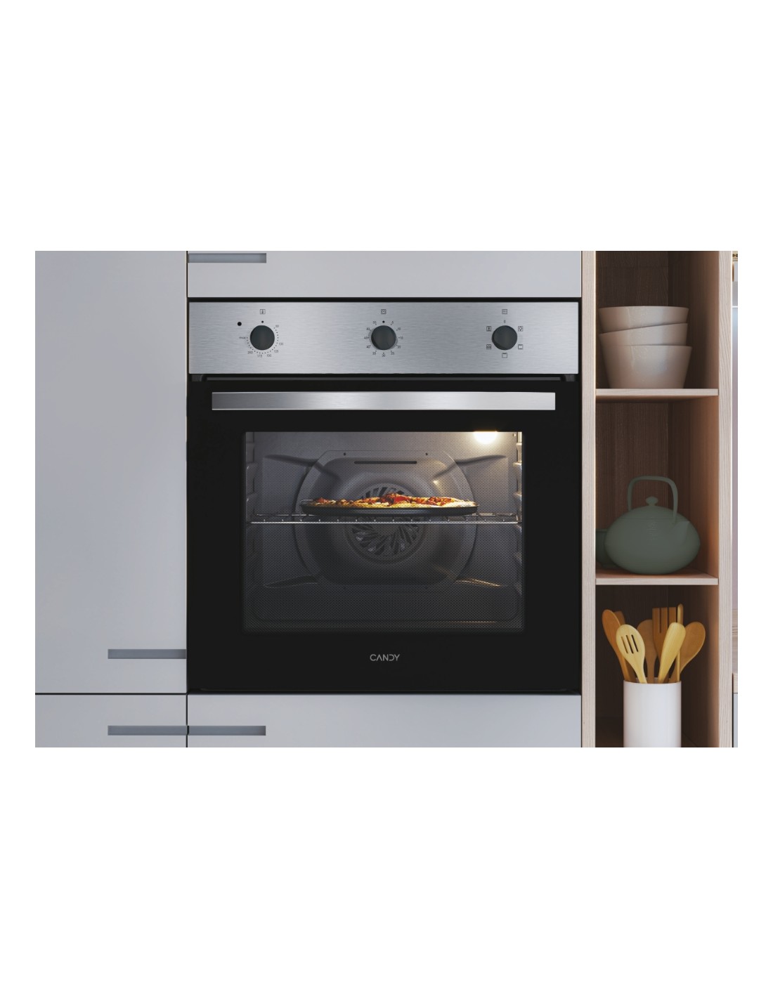 Candy Idea FMCIDC X602. Dimensione del forno: Media, Tipo di forno: Forno elettrico, Capacità interna forno totale: 65 L. Posizionamento dell'apparecchio: Da incasso, Colore del prodotto: Acciaio inox, Tipo di controllo: Manopola. Classe efficienza energetica: A, Consumo energetico (convenzionale): 0,98 kWh, Consumo energetico (convezione forzata): 0,78 kWh. Larghezza del compartimento: 56 cm, Profondità del compartimento: 56 cm, Altezza del compartimento: 58,5 cm. Larghezza imballo: 620 mm, Profondità imballo: 646 mm, Altezza imballo: 665 mm