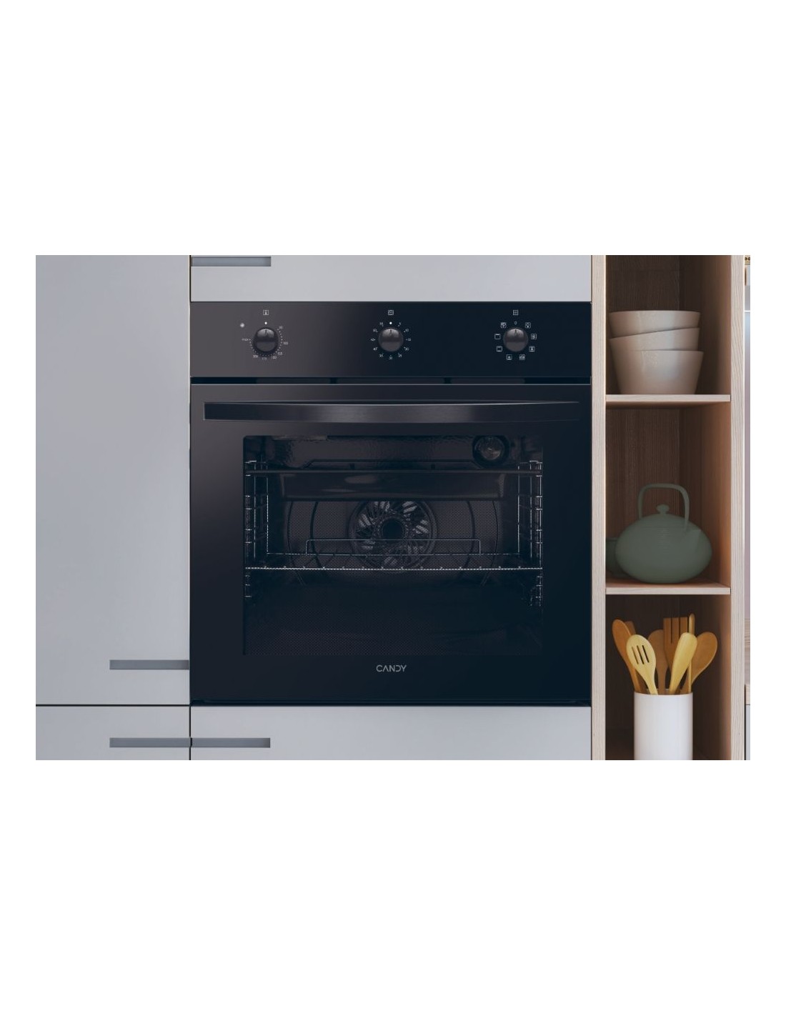 Candy Idea FMCIDC N602/N. Dimensione del forno: Media, Tipo di forno: Forno elettrico, Capacità interna forno totale: 65 L. Posizionamento dell'apparecchio: Da incasso, Colore del prodotto: Nero, Tipo di controllo: Manopola. Consumo energetico (convenzionale): 0,98 kWh, Consumo energetico (convezione forzata): 0,67 kWh, Scala di efficienza energetica: Da A+++ a D. Larghezza del compartimento: 56 cm, Profondità del compartimento: 56 cm, Altezza del compartimento: 58,5 cm. Larghezza imballo: 620 mm, Profondità imballo: 646 mm, Altezza imballo: 665 mm