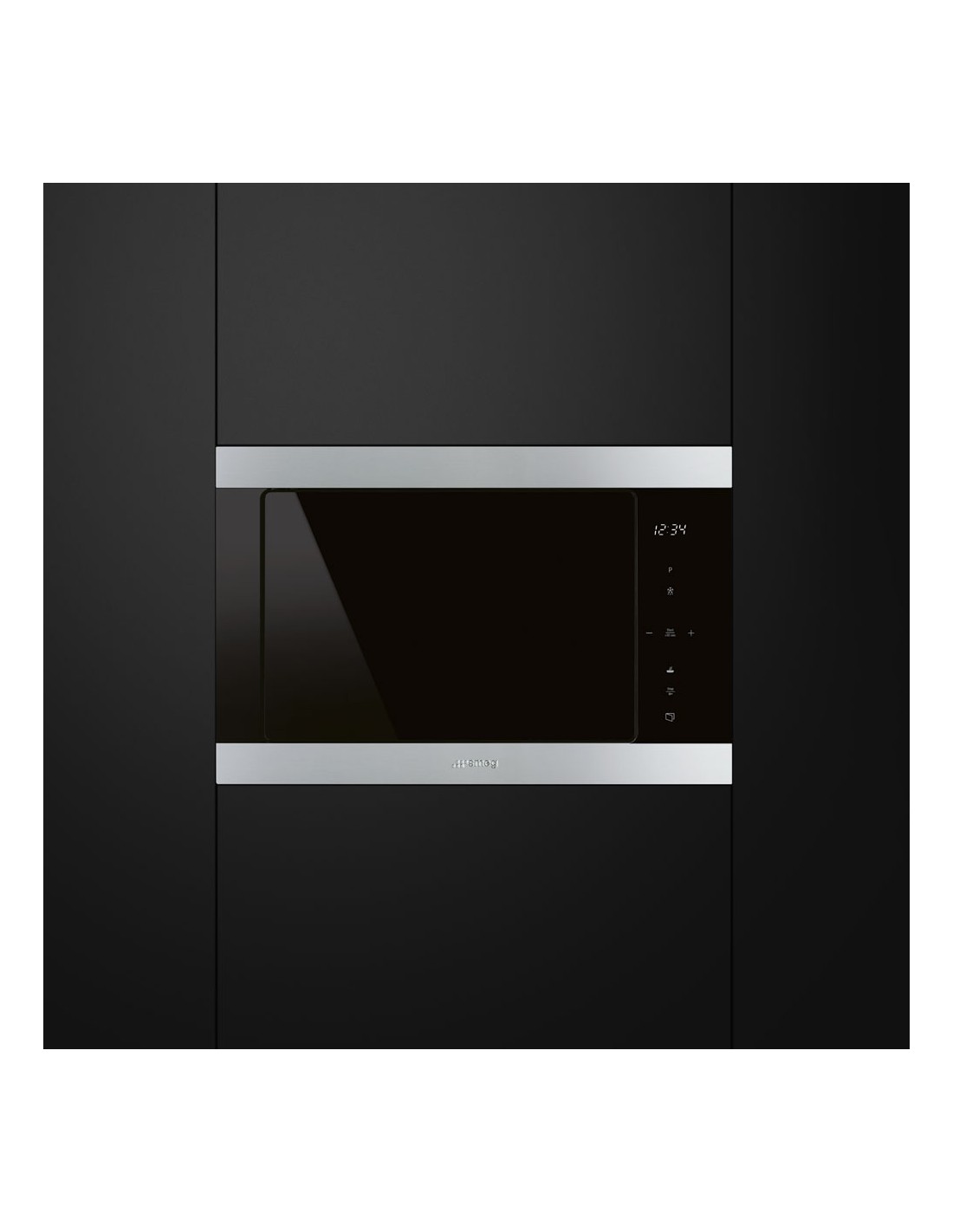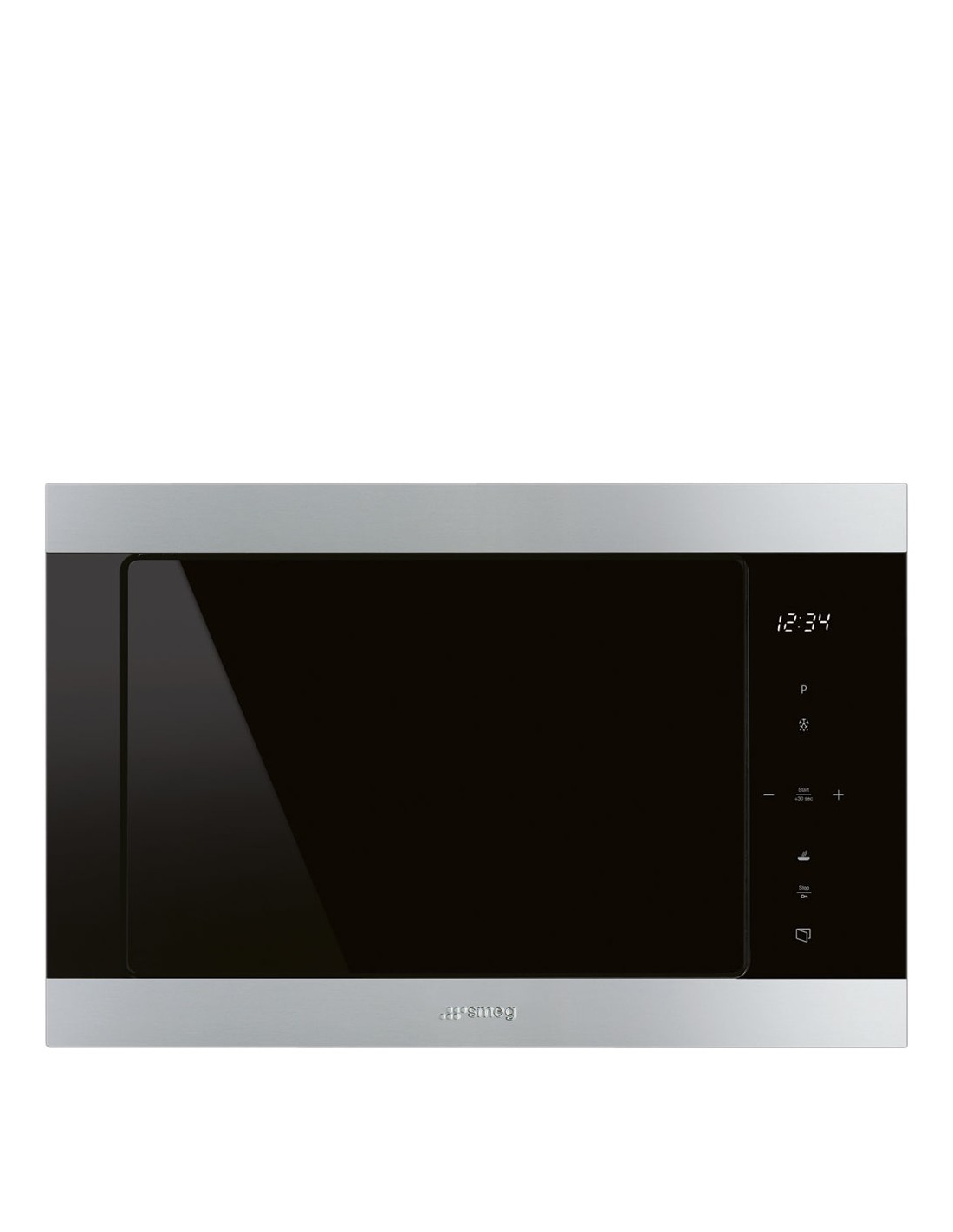 Smeg FMI325X. Posizionamento dell'apparecchio: Da incasso, Tipo di prodotto: Microonde con grill, Capacità interna: 25 L, Potenza Microonde: 900 W, Display incorporato, Tipo di display: LED, Tipo di controllo: Touch, Colore del prodotto: Nero, Acciaio inox