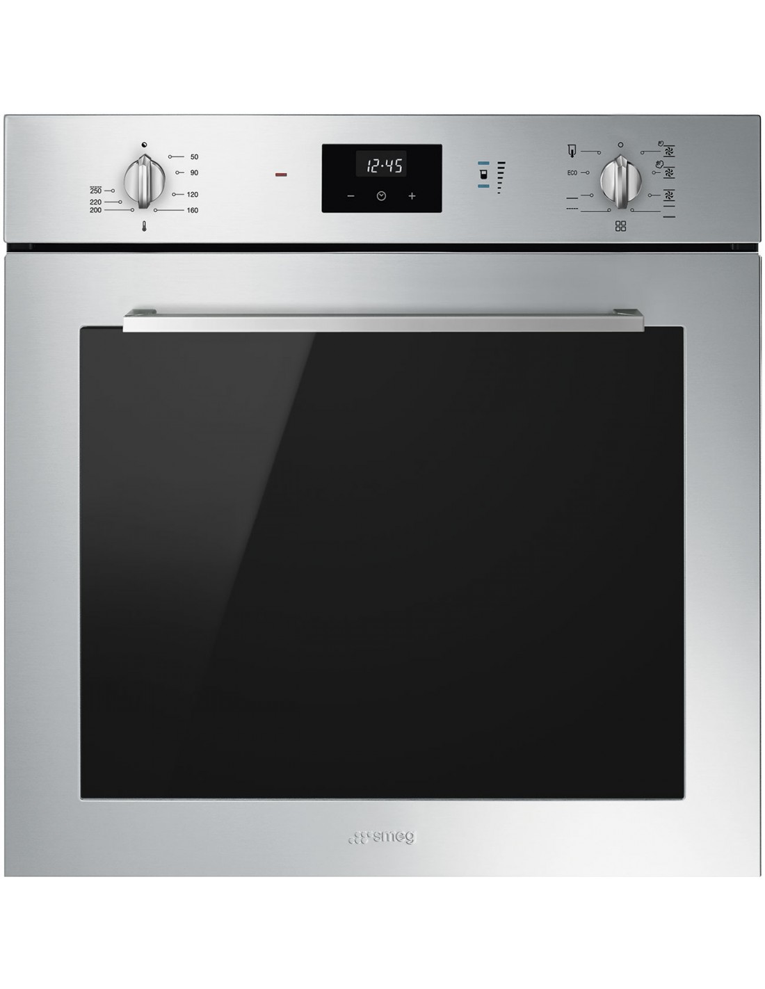 Smeg Classic SO6400S2TR. Dimensione del forno: Media, Tipo di forno: Forno elettrico, Capacità interna forno totale: 68 L. Posizionamento dell'apparecchio: Da incasso, Colore del prodotto: Acciaio inox, Tipo di controllo: Manopola, Touch. Tipo di orologio: Elettronico, Tipo di timer: Digitale. Consumo energetico (convenzionale): 1,15 kWh, Consumo energetico (convezione forzata): 0,8 kWh, Tensione di ingresso AC: 220 - 240 V. Quantità lampade: 1 lampada(e), Tipo di lampada: Alogena, Potenza lampadina: 40 W