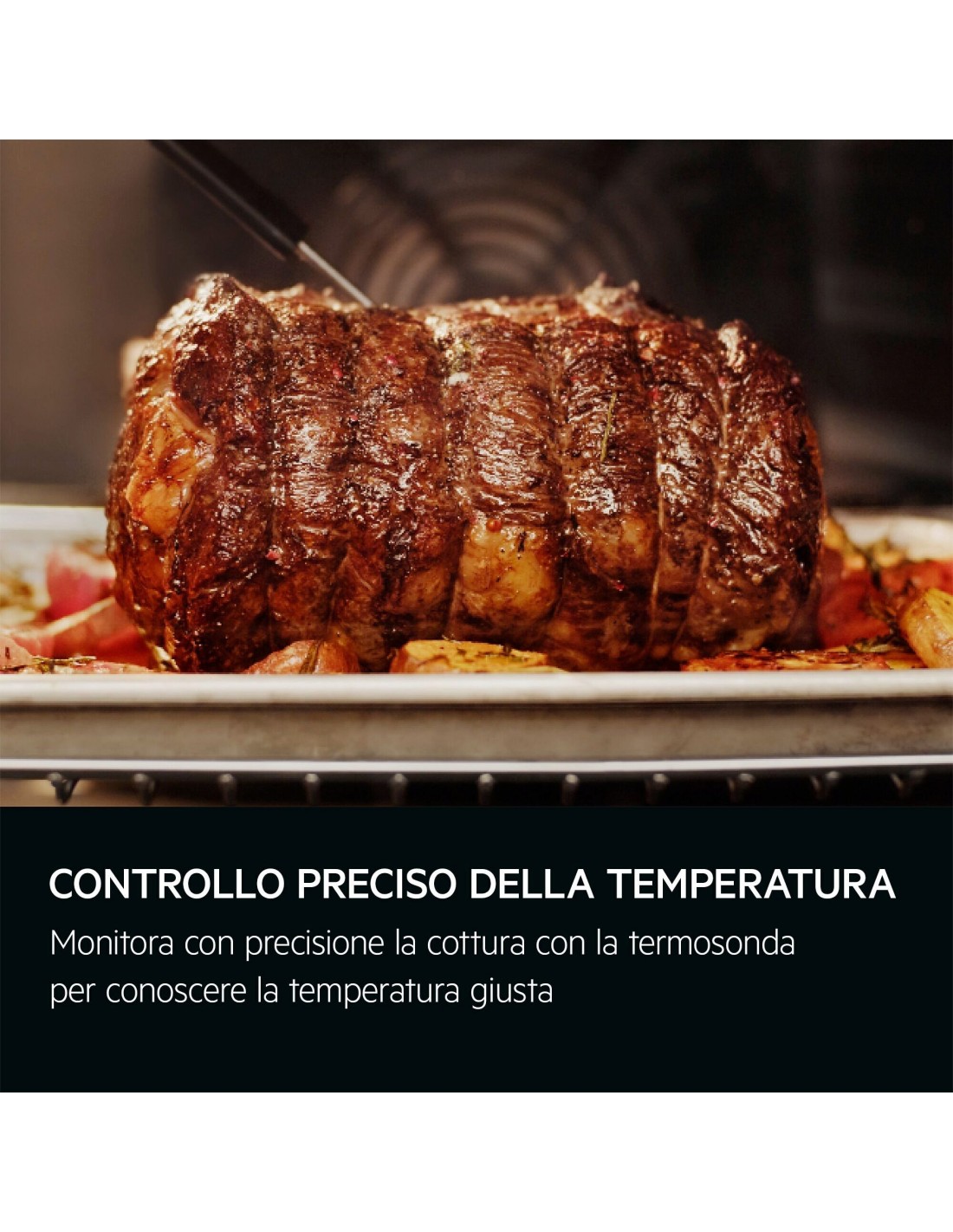 Il sensore alimenti consente di monitorare con precisione la cottura, per ottenere risultati perfetti indipendentemente dalla ricetta. Il forno segnala quando il cibo ha raggiunto la giusta temperatura.
