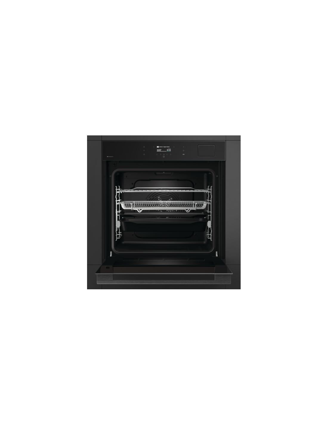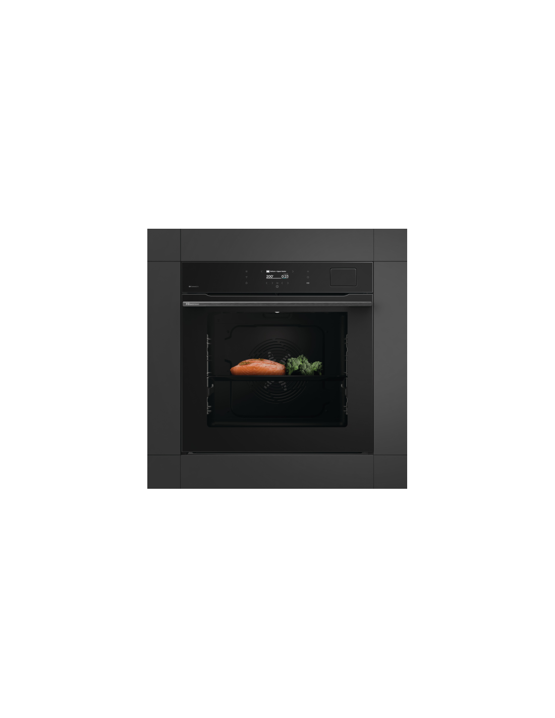 Hisense BAS614A8B. Dimensione del forno: Largo, Tipo di forno: Forno elettrico, Capacità interna forno totale: 77 L. Posizionamento dell'apparecchio: Da incasso, Colore del prodotto: Nero, Tipo di controllo: Touch. Tipo di orologio: Elettronico, Tipo di timer: Digitale. Classe efficienza energetica: A+, Consumo energetico (convenzionale): 0,97 kWh, Consumo energetico (convezione forzata): 0,71 kWh. posizione delle illuminazioni: Lato, Alto