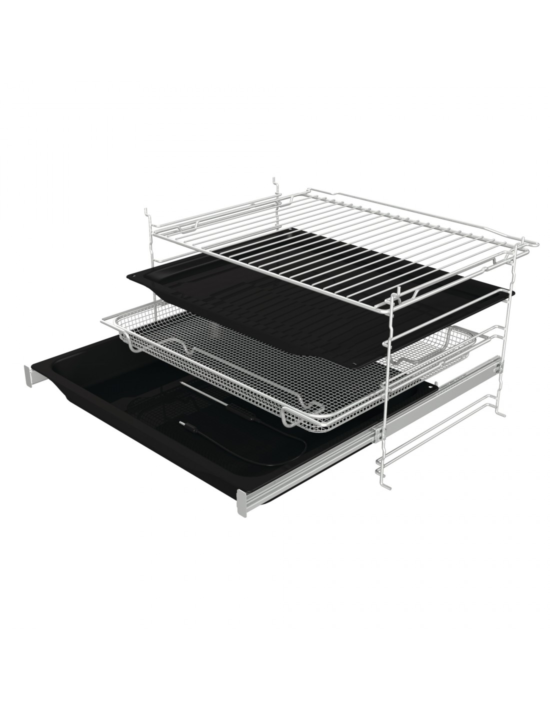 Non è più necessario rimuovere le griglie e le guide telescopiche quando si attiva la pulizia pirolitica. Inoltre sono completamente estendibili, garantendo un supporto saldo ed efficiente per tutte le vostre preparazioni.