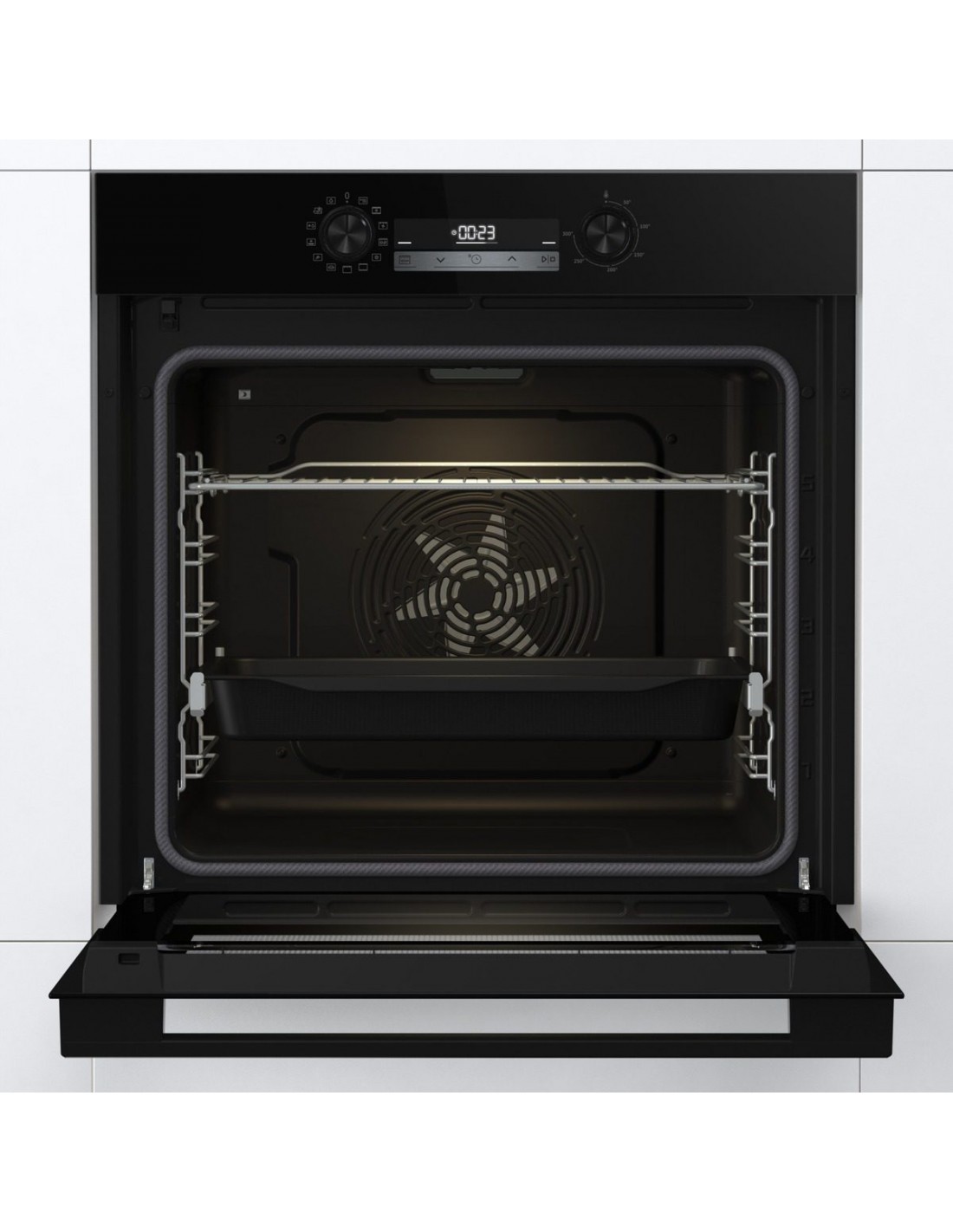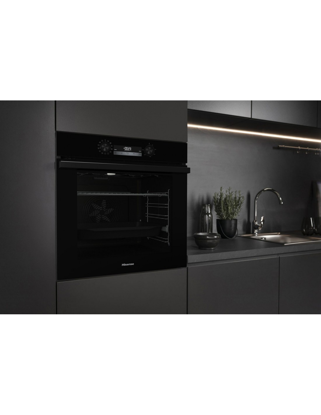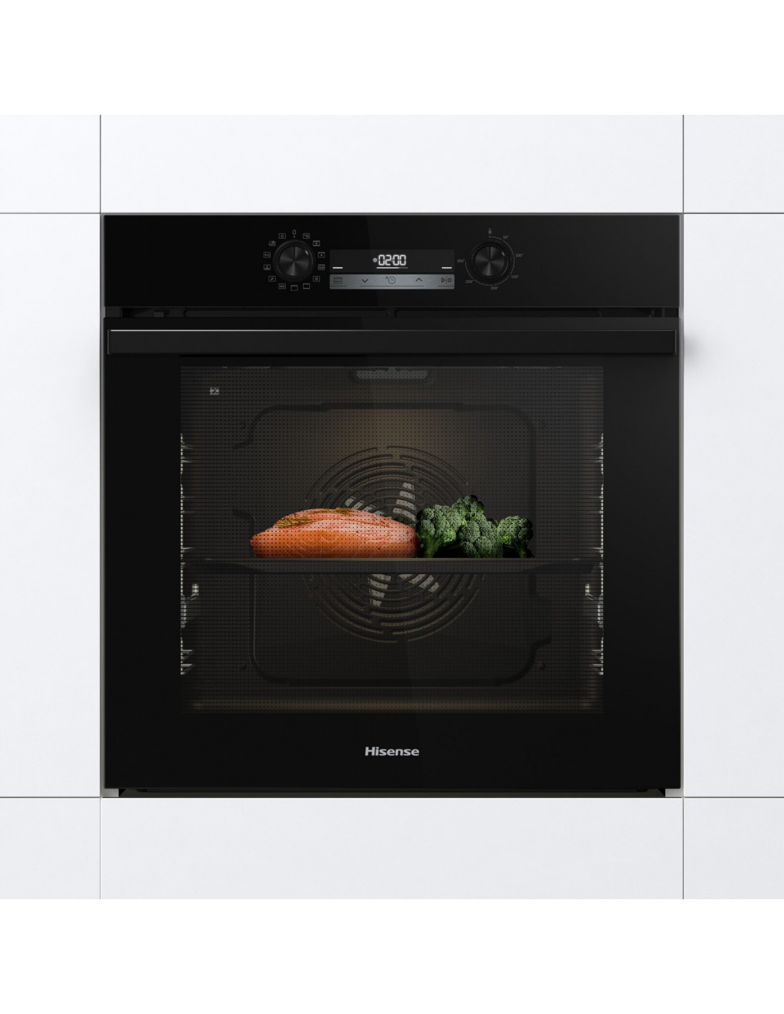 Hisense O64213EPBG. Dimensione del forno: Largo, Tipo di forno: Forno elettrico, Capacità interna forno totale: 77 L. Posizionamento dell'apparecchio: Da incasso, Colore del prodotto: Nero, Tipo di controllo: Manopola. Tipo di orologio: Elettronico, Tipo di timer: Digitale. Classe efficienza energetica: A+, Consumo energetico (convenzionale): 1,03 kWh, Consumo energetico (convezione forzata): 0,71 kWh. Tecnologie Hisense (cucina): Air Fry, Frozen Food Mode, Gratin