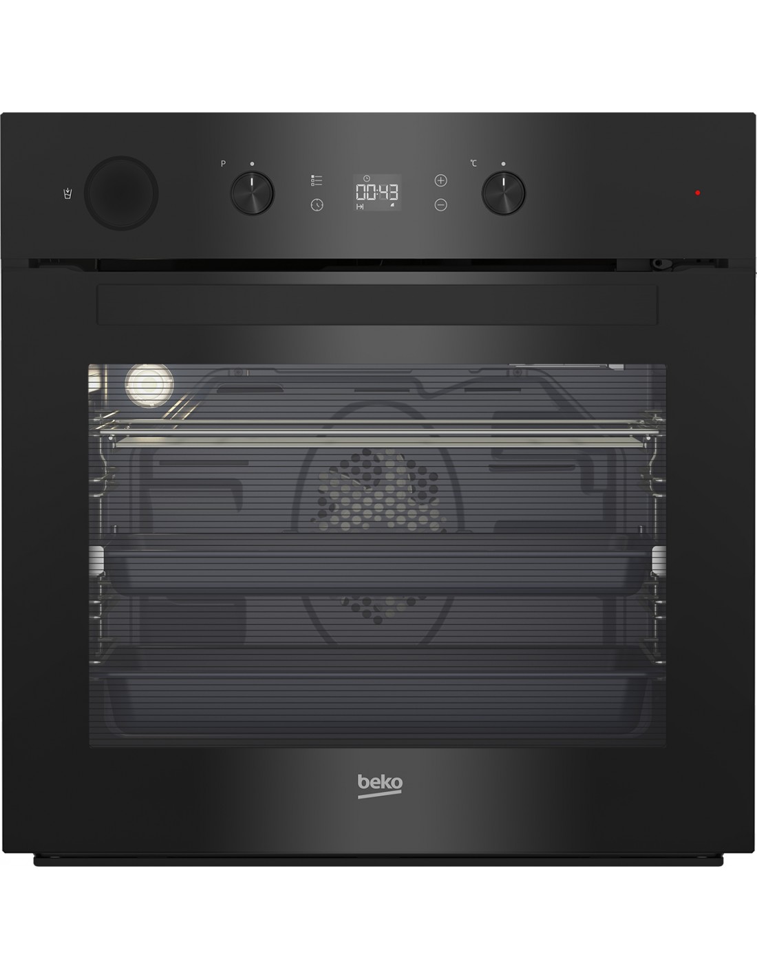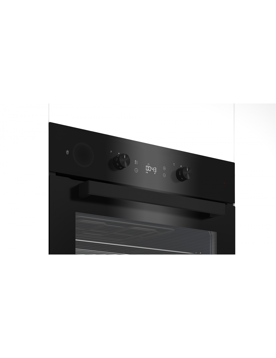 Il Beko BIS14300BPS presenta un design raffinato e moderno, con il suo colore nero elegante che si adatta perfettamente a qualsiasi ambiente di cucina. La cerniera della porta in basso e la porta fredda offrono una maggiore sicurezza durante l'uso, impedendo il surriscaldamento esterno e proteggendo da possibili scottature. La manopola di controllo frontale permette di regolare facilmente tutte le impostazioni, mentre il display LED incorporato fornisce informazioni chiare e intuitive sulle funzioni del forno.